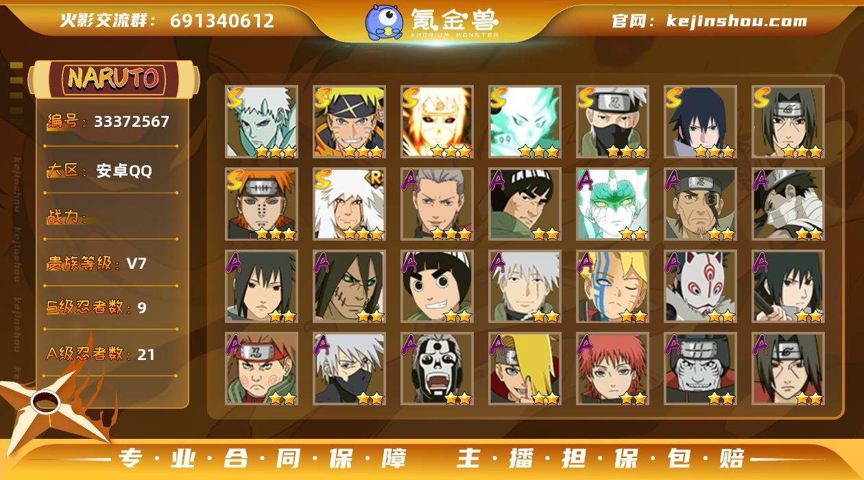 【编号18587 可秒换绑】【店长推荐!极品火影号!7级霸体!带有新出的高招s十尾人柱力带土和九喇叭连结水门,再就是新出的仙人模式巳月,晚了就没了,赶快入手!!】 9S级忍者数-21A级忍者数 【S级忍者】:宇智波鼬「须佐能乎」(3星),旗木卡卡西「须佐能乎」(3星),自来也「舞之豪杰」(3星),佩恩「天道」(3星),宇智波佐助「永恒万花筒」(3星),大筒木舍人「最终章」(3星),波风水门「九喇嘛连结」(3星),漩涡鸣人·宇智波佐助(3星),宇智波带土「十尾人柱力」(3星) 【A级忍者】:迪达拉(2星),飞段(3星),飞段「死司凭血」(2星),干柿鬼鲛(2星),漩涡博人「桃式显现」(2星),迈特凯(2星),旗木卡卡西「万花筒写轮眼」(2星),旗木卡卡西「幻之真容」(2星),桃地再不斩「秽土转生」(2星),蝎(2星),角都「秽土转生」(2星),猿飞阿斯玛(2星),宇智波鼬(2星),宇智波佐助「须佐能乎」(2星),神秘面具男「忍者之路」(2星),李洛克「忍界大战」(2星),秋道丁次「忍界大战」(2星),土台「忍界大战」(2星),宇智波泉奈(2星),巳月「仙人模式」(2星),迈特凯「青春爆炸」(2星)