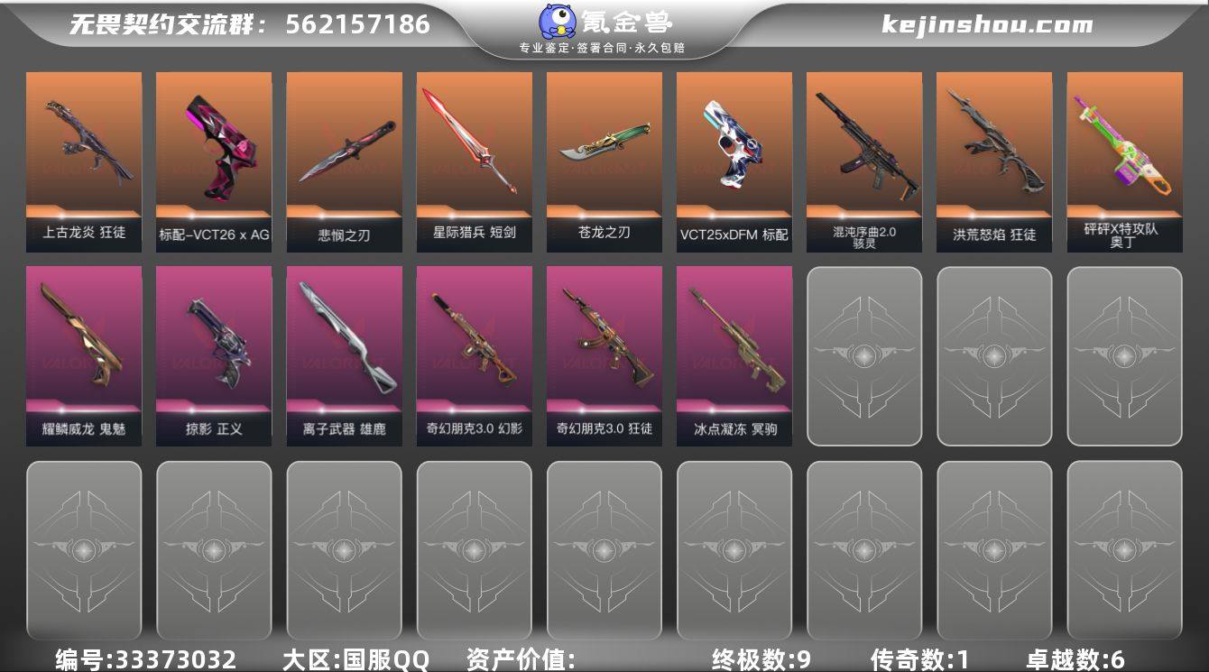【956501】【套装】:无畏契约季前邀请赛套装 【英雄】:幻棱,炼狱,暮蝶,铁臂,捷风,雷兹,幽影,不死鸟,贤者,猎枭,芮娜,尚勃勒,霓虹,盖可,黑梦,钢锁 【近战武器】:近战武器-无畏契约季前邀请赛 悲悯之刃,近战武器-魔术火花,近战武器-5周年//公测重制版 苍龙之刃,近战武器-星际猎兵 短剑,近战武器-魔术火花 【狂徒】:狂徒-洪荒怒焰,狂徒-上古龙炎,狂徒-奇幻朋克//3.0 【幻影】:幻影-奇幻朋克//3.0 【冥驹】:冥驹-冰点凝冻 【奥丁】:奥丁-砰砰X特攻队 【雄鹿】:雄鹿-离子武器 【骇灵】:骇灵-混沌序曲//2.0,骇灵-无限竞技 【VCT手枪】:标配-VCT26 x AG,标配-VCT25 x DFM 【正义】:正义-掠影 【鬼魅】:鬼魅-耀鳞威龙 【卡面】:银弹猎手 卡面,欢迎来到底城 卡面,南瓜盛典 卡面,热舞环节 卡面,正义的化身 卡面,红鳞松叶 卡面,无畏契约GO!第一卷:芮娜 卡面,无畏契约GO!第一卷:零 卡面,《双城之战》金克丝 卡面,无畏契约GO!第一卷:贤者 卡面,代号红色 卡面,新兵报到 卡面,V契约 卡面,无畏契约 卡面 【喷漆】:控场勿近 喷漆,捷风差距 喷漆,买装还是存钱 喷漆,暴走萝莉 喷漆,胜利属于无畏契约 喷漆,GLHF 喷漆,无畏契约 喷漆...