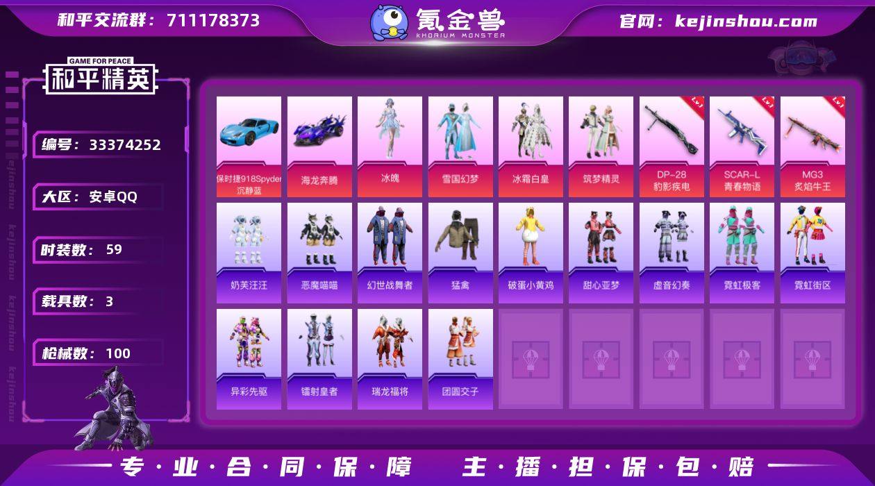 4粉装 3粉枪 3载具 59套装 100枪皮 16热门 路特斯ELETRE(冰川蓝) 海龙奔腾 保时捷918 Spyder(沉静蓝) 雪国幻梦(冰雪女王) 冰霜白皇 筑梦精灵 疯狂小兔子 炫蓝之夏 黄色名流 银白舞王 耀粉歌者 潮流炫酷 飞驰魅影 音速流光 冰川谧蓝 竞技名士 特战装甲 冰冻风暴 完美偶像 千禧之恋 街头潮人 绮丽涂鸦 夜莺强袭者 浓情蜜辣 奶芙汪汪 风行保卫者 幻世战舞者 夏日音浪 角色-冰魄 S686-生命誓言 Mini14-耀粉歌者 汤姆逊-炫彩节奏 S1897-飞驰魅影 汤姆逊-异彩先驱 SCAR-L-青春物语(6级) M416-红色方程式 汤姆逊-耀粉歌者 S12K-破晓战魂 AUG-耀粉歌者 QBZ-飞驰魅影 DBS-甜心亚梦 野牛-乌木金纹 Mini14-春暖花开 DP-28-甜心亚梦 MP5K-异彩先驱 AC-VAL-甜心亚梦 Mini14-异彩先驱 AWM-乌木金纹 P90-筑梦精灵 AKM-乌木金纹 AKM-灼热熔岩 Kar98K-飞驰魅影 SCAR-L-乌木金纹 MG3-瑞龙福将 M24-炫彩节奏 M24-乌木金纹 MG3-甜梦小狐 S1897-镭射皇者 AWM-庄周梦蝶 Win94-瑞龙福将 AKM-恐龙拽拽 AKM-筑梦精灵 UZI-啾咪啾咪 S12K-瑞龙福将 UZI-乌木金纹 G36C-乌木金纹 Mk14-乌木金纹 G36C-青丘仙客 UMP45-春暖花开 UZI-生命誓言 UMP45-生命誓言 M16A4-红色方程式 汤姆逊-天降萌叽 VSS-镭射皇者...