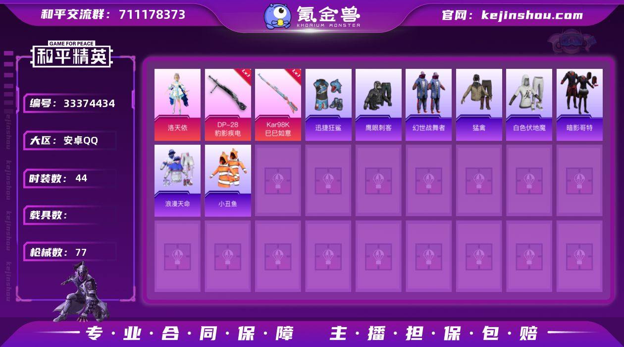1粉装 7粉枪 44套装 77枪皮 10热门 洛天依 快乐星愿 阳光火鸡 猛禽 鹤鸣 天籁歌者 电音精灵 竞技名士 街头潮人 缤纷果语 M416-红色方程式 汤姆逊-耀粉歌者 S686-红色方程式 AC-VAL-乌木金纹 QBZ-洛神天依 蜜獾-天降萌叽 M24-炫彩节奏 AUG-天降萌叽 QBZ-彩虹符号 S12K-夜灯 UZI-啾咪啾咪 UMP45-夜灯 VSS-彩虹符号 MP5K-乌木金纹 UZI-天降萌叽 SCAR-L-夜灯 Kar98K-洛神天依 SKS-炫彩节奏 AKM-龙的传人 Kar98K-梦幻火箭 P90-乌木金纹 M16A4-幻世战舞者 SCAR-L-红色方程式 Kar98K-巳巳如意(4级) DP-28-豹影疾电(5级) 暗影哥特(红眼罩) 浪漫天命 小丑鱼 迅捷狂鲨 白色伏地魔 Mk47-洛神天依 M762-天降萌叽 MG3-幻世战舞者 鹰眼刺客 长空猛禽 极意拳锋飞行器
