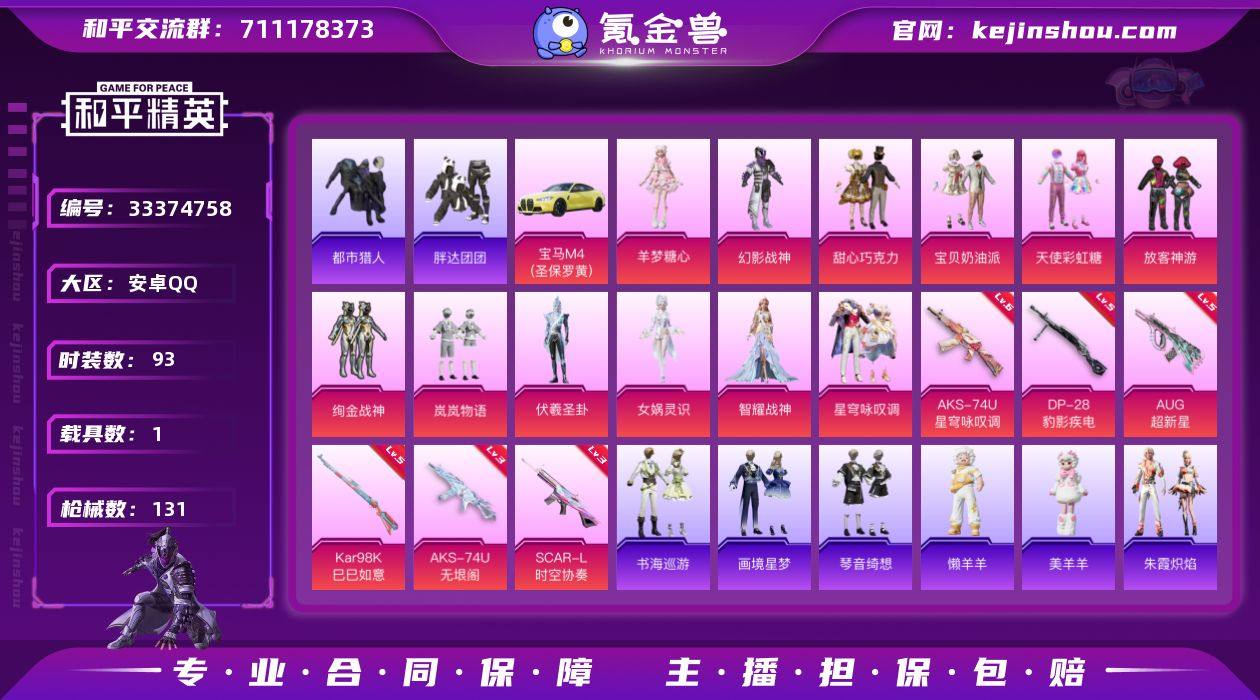 安卓【素材号 粉装-甜心巧克力/粉装-宝贝奶油派/粉装-天使彩虹糖/粉装-放客神游/套装-都市猎人/角色-羊梦糖心/AUG-超新星(五级)/宝马M4(圣保罗黄)】 手Q-12粉装-8特效枪-1载具-6粉色飞行器-44935热力值-7王牌印记-93套装-131枪皮 【热门品类】:套装-都市猎人,套装-胖达团团 【粉色套装】:粉装-幻影战神,粉装-甜心巧克力,粉装-宝贝奶油派,粉装-天使彩虹糖,粉装-放客神游,粉装-绚金战神,粉装-岚岚物语,角色-伏羲圣卦,角色-女娲灵识,角色-智耀战神,粉装-星穹咏叹调,角色-羊梦糖心 【粉色枪皮等级】:SCAR-L-时空协奏(三级),AUG-超新星(五级),ACE32-萌骑漫游(四级),AKS-74U-星穹咏叹调(六级),AKS-74U-无垠阁(三级),Kar98K-巳巳如意(五级),Mk14-福马献瑞(一级),DP-28-豹影疾电(五级) 【粉色载具】:宝马M4(圣保罗黄),僚机-萌兔起飞 【粉色枪皮】:SCAR-L-时空协奏,AUG-超新星,ACE32-萌骑漫游,AKS-74U-星穹咏叹调,AKS-74U-无垠阁,Kar98K-巳巳如意,Mk14-福马献瑞,DP-28-豹影疾电 【粉色飞行器】:炫彩糖果飞行器,祥瑞起舞飞行器,时空协奏飞行器,圣域金龙飞行器,终晖之翼飞行器,无垠阁飞行器 【粉色降落伞】:幻影战神降落伞,甜心宝贝降落伞,...