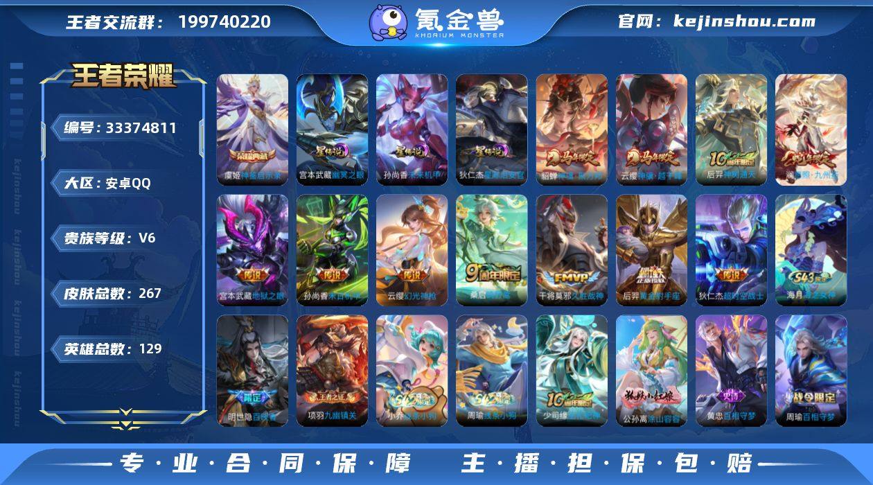 VT4447 安卓QQV6 267皮 1典藏 3星元 88限定11传说 9按键 打野22段 发育路20段 全能高手 782英雄碎片 111皮肤碎片 7改名卡 10印记 营地号:531404759【荣耀典藏】神鉴启示录, 【星元皮肤】幽冥之眼,未来机甲,星际治安官, 【热门限定】神骥·越千峰,神骥·聚万邦,愿照·九州拓,器灵·浮梦炉,至尊宝,如梦令男,暗影游猎,逐霄战戟,巫礼祀神,涂山容容, 【限定传说】猫狗日记男,久胜战神,地狱之眼,龙骑士,梁祝,未来纪元,神迹守卫,黄金射手座,天秀·启明,黄金分割率,超时空战士,晚萤,千年之狐,末日机甲男,末日机甲女,雪上飞焰,原初探秘者,水晶猎龙者,金属风暴,特工魅影,曙光守护者,幻光神枪,圣诞恋歌,白蛇,逐浪之夏,紫霞仙子,功夫厨神,心灵骇客,幽灵船长,圣诞狂欢,星夜王子,节奏热浪,偶像歌手,街头霸王,箭羽风息,摇滚巨星,鬼剑武藏,云间偶戏,冰冠公主,花好人间,御霄,御旌,御銮,朔风刀,混沌棋,疑决卦,醍醐杖,万华元夜,东方不败,拳王,女仆咖啡,霸王丸,敏锐之力,丁香结,科学大爆炸,赤刃凌霄,