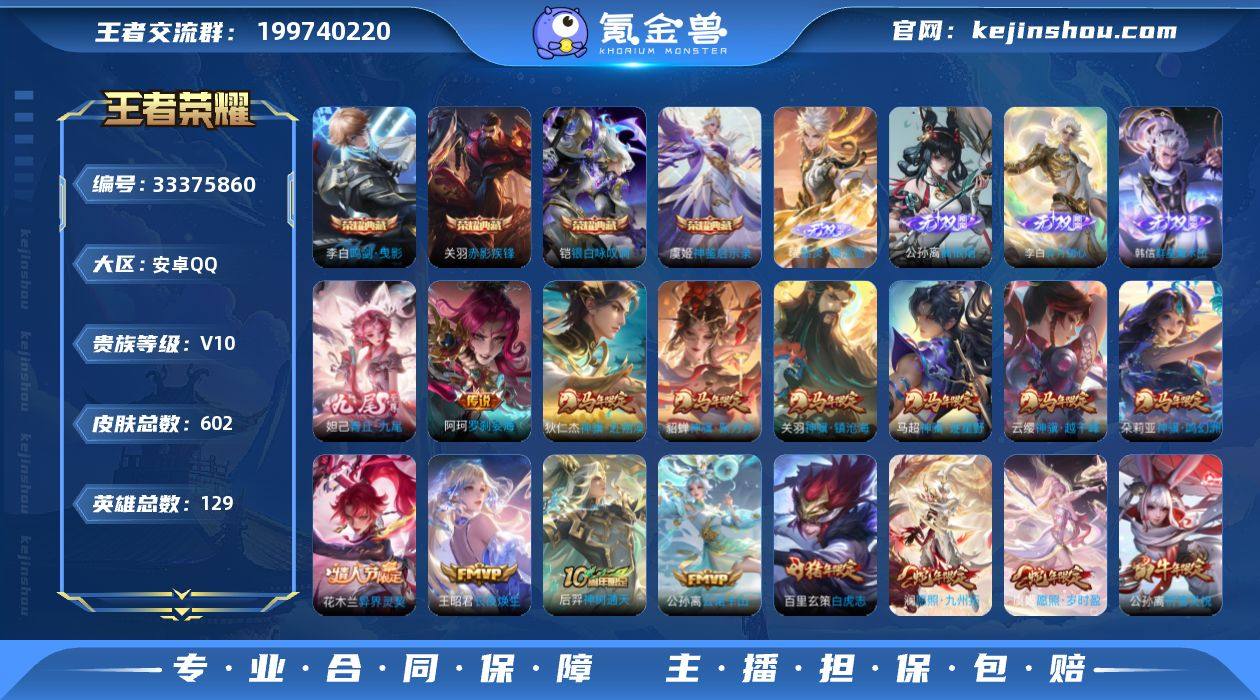 安卓Q-V10-至尊星耀V段位-129英雄-602皮肤-4典藏皮肤-5无双-95传说-210史诗 【英雄全皮】:阿轲全皮,扁鹊全皮,白起全皮,姜子牙全皮,刘邦全皮,孙权全皮,娜可露露全皮,橘右京全皮,刘备全皮,虞姬全皮,钟馗全皮,鬼谷子全皮,黄忠全皮,百里玄策全皮,公孙离全皮,狂铁全皮,云中君全皮,盾山全皮,猪八戒全皮,敖隐全皮,海月全皮,蒙犽全皮,鲁班大师全皮,蒙恬全皮,澜全皮,镜全皮,夏洛特全皮,金蝉全皮,赵怀真全皮,莱西奥全皮,戈娅全皮,空空儿全皮,影全皮,海诺全皮 【荣耀典藏】:李白鸣剑曳影,关羽赤影疾锋,铠银白咏叹调,虞姬神鉴启示录 【无双皮肤】:曜器灵螭龙剑,公孙离离恨烟,韩信群星魔术团,李白碎月剑心,妲己青丘九尾 【传说皮肤】:阿轲罗刹妄海,云缨神骥越千峰,关羽神骥镇沧海,朵莉亚神骥鸣幻洲,狄仁杰神骥赴朔漠,貂蝉神骥聚万邦,马超神骥逐星野,花木兰异界灵契,王昭君长夜焕生,后羿神树通天,公孙离云诺千山,澜愿照九州拓,虞姬愿照岁时盈,云缨幻光神枪,桑启鸣野蒿,夏侯惇霜北刀,铠冥王哈迪斯,朵莉亚心动手记,云中君群星魔术团,墨子黄金天蝎座,海月金乌负日,亚连落雪白狼,吕布曦玄引,貂蝉曦玄引,典韦战鼓燎原,孙尚...