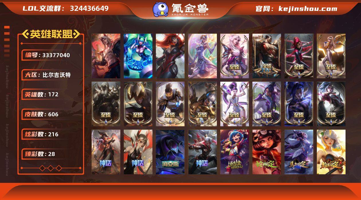 【圣堂瑟提 神话幻想永恩】级段位-172英雄-606皮肤-216炫彩-3终极-23神话-97限定-67传说-93史诗 【珍稀头像】:雪花头像 【热门头像】:爱意绵绵头像 【圣堂皮肤】:金蛇巨星瑟提 【神话皮肤】:十周年纪念安妮,殿堂传奇乐芙兰,殿堂传奇薇恩,西部魔影炽天使永恩 【至臻皮肤】:至臻灵魂莲华易,至臻黑色玫瑰假面舞会卡特琳娜,至臻暗裔英雄嘉文四世,至臻黑夜使者李青,至臻魔女阿卡丽,至臻灵魂莲华拉克丝,至臻凯旋将军德莱厄斯,至臻永恒星灵佐伊,至臻KDA卡莎,至臻KDAALLOUT卡莎,至臻未来战士卢锡安,至臻灵魂莲华劫,至臻腥红之月亚托克斯,至臻T1塞拉斯,至臻莲华温泉厄斐琉斯,至臻北极星神梅尔,至臻神龙尊者炎龙瑟提,至臻至高天奎桑提 【海克斯皮肤】:海克斯科技魔腾 【臻彩皮肤】:天龙之子卡莎飞龙乘云,吕布奉先炫金战神,墨之影武者亚索金墨耀影,灵魂莲华阿狸春晓,神龙尊者圣龙李青龙腾云起,墨之影武者永恩云墨漾影,西部魔影永恩忠诚,幻灵白鸽萨勒芬妮梦幻强袭,花仙子拉克丝纹白,霸天异形卡兹克掠空魅影,弹幕天使卡莎炽天使勇敢,西部魔影卢锡安贝利尔之怠,玉剑传说翼剑仙珠光,星之守护者金克丝黑洞,海之歌永恩月夜潮汐,殿堂传奇乐芙兰登神,...