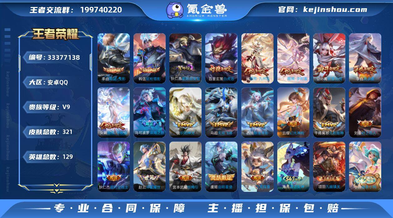 王者20694,不可二次,244夺宝,2339星币,安卓Q-V9-永恒钻石I段位-129英雄-321皮肤-2典藏皮肤-18传说-85史诗 【英雄全皮】:苍全皮,赵怀真全皮 【荣耀典藏】:李白鸣剑曳影,韩信弑枪猎影 【传说皮肤】:女娲愿照千秋盛,澜愿照九州拓,虞姬愿照岁时盈,云缨幻光神枪,宫本武藏惊梅引,马可波罗深海之息,马超无双飞将,赵云淬星耀世,西施游龙清影,李元芳飞鸢探春,公孙离祈雪灵祝,镜炽阳神光,虞姬启明星使,刘备时之恋人,干将莫邪久胜战神,百里玄策白虎志,李白凤求凰,狄仁杰超时空战士 【限定皮肤】:白起狰,大乔绒语心约,姜子牙天穹之誓,杨戬破阵退雄兵,狄仁杰阴阳师,虞姬凯尔特女王,赵云皇家上将,墨子神迹守卫,孙尚香蔷薇恋人,鲁班七号狮舞东方,庄周蜃楼王,庄周云端筑梦师,庄周高山流水,高渐离死亡摇滚,孙膑妖精王,扁鹊炼金王,芈月重明,元歌云间偶戏,元歌无心,夏侯惇朔风刀,曹操烛龙,典韦穷奇,马可波罗逐梦之星,马可波罗暗影游猎,马可波罗深海之息,狄仁杰魔术师,狄仁杰万华元夜,达摩星际陆战队,达摩沙漠行僧,项羽海滩派对,老夫子醍醐杖,老夫子航海奇遇记,关羽冰锋战神,安琪拉魔法小厨娘,程咬金演武夺筹,兰陵王金庭之子,亚瑟...