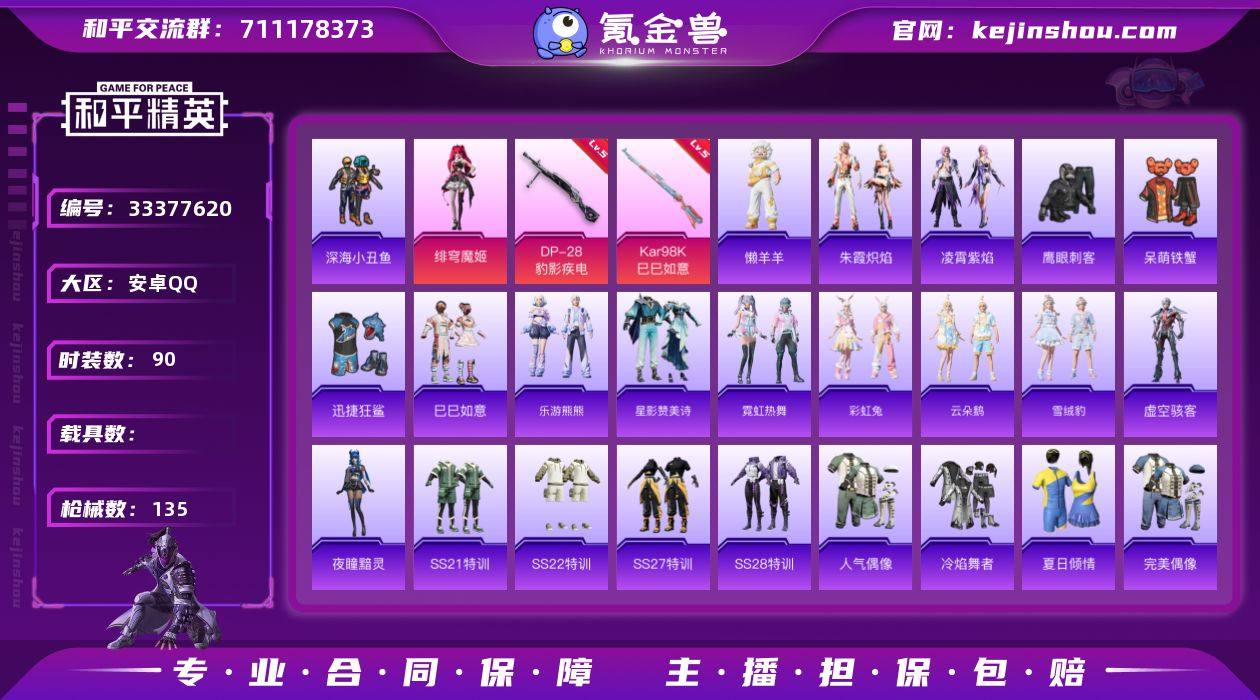 【编号59842 可秒换绑】【店长推荐极品小号!2粉装5升级枪 深海小丑鱼!】 安卓 手Q-2粉装-5特效枪-0载具-2粉色飞行器-32732热力值-1王牌印记-90套装-135枪皮 【热门品类】:套装-深海小丑鱼 【粉色套装】:角色-绯穹魔姬,角色-虹云熊熊 【粉色枪皮等级】:AKS-74U-森灵之息(五级),Kar98K-巳巳如意(五级),Mk14-福马献瑞(五级),AA12-G-萌骑幻想(三级),DP-28-豹影疾电(五级) 【粉色枪皮】:AKS-74U-森灵之息,Kar98K-巳巳如意,Mk14-福马献瑞,AA12-G-萌骑幻想,DP-28-豹影疾电 【粉色飞行器】:炫彩糖果飞行器,终晖之翼飞行器 【粉色降落伞】:环太平洋降落伞,星穹咏叹调降落伞,绯穹魔姬降落伞,喜羊羊与灰太狼降落伞,炫彩糖果降落伞,虹云熊熊降落伞 【稀有套装】:套装-巳巳如意,套装-乐游熊熊,套装-雪国风尚,套装-炫彩糖果,套装-马上来财,套装-星影赞美诗,套装-霓虹热舞,套装-彩虹兔,套装-云朵鹅,套装-雪绒豹,角色-虚空骇客,角色-夜瞳黯灵,套装-朱霞炽焰,套装-凌霄紫焰,玩偶服-懒羊羊,角色-碧青流霞,套装-红釉青花,角色-曹焱兵 【稀有枪皮】:AKM-星之彼岸,AKM-破晓战魂,M16A4-幻世战舞者,M16A4-红色方程式,M16A4-蓝色火焰,M16A4-最终圣卫者...