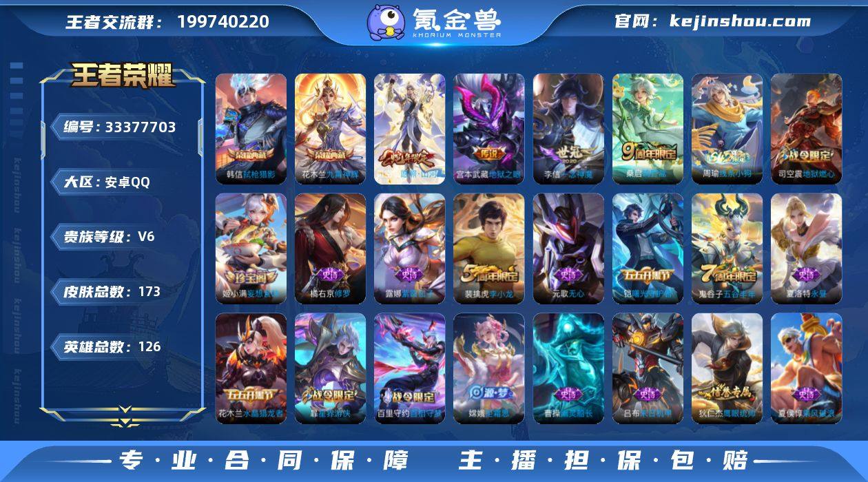 编号100076 不可二次 V6 173皮肤 2典藏 4传说 弑枪猎影 九霄神辉 愿照·山河定 一念神魔 地狱之眼 鸣野蒿 逐霄战戟 逐浪之夏 妄想食味 无心 百里守约-百相守梦 街头霸王 乱世虎臣 李小龙 天秀·启明 曙光守护者 修罗 水晶猎龙者