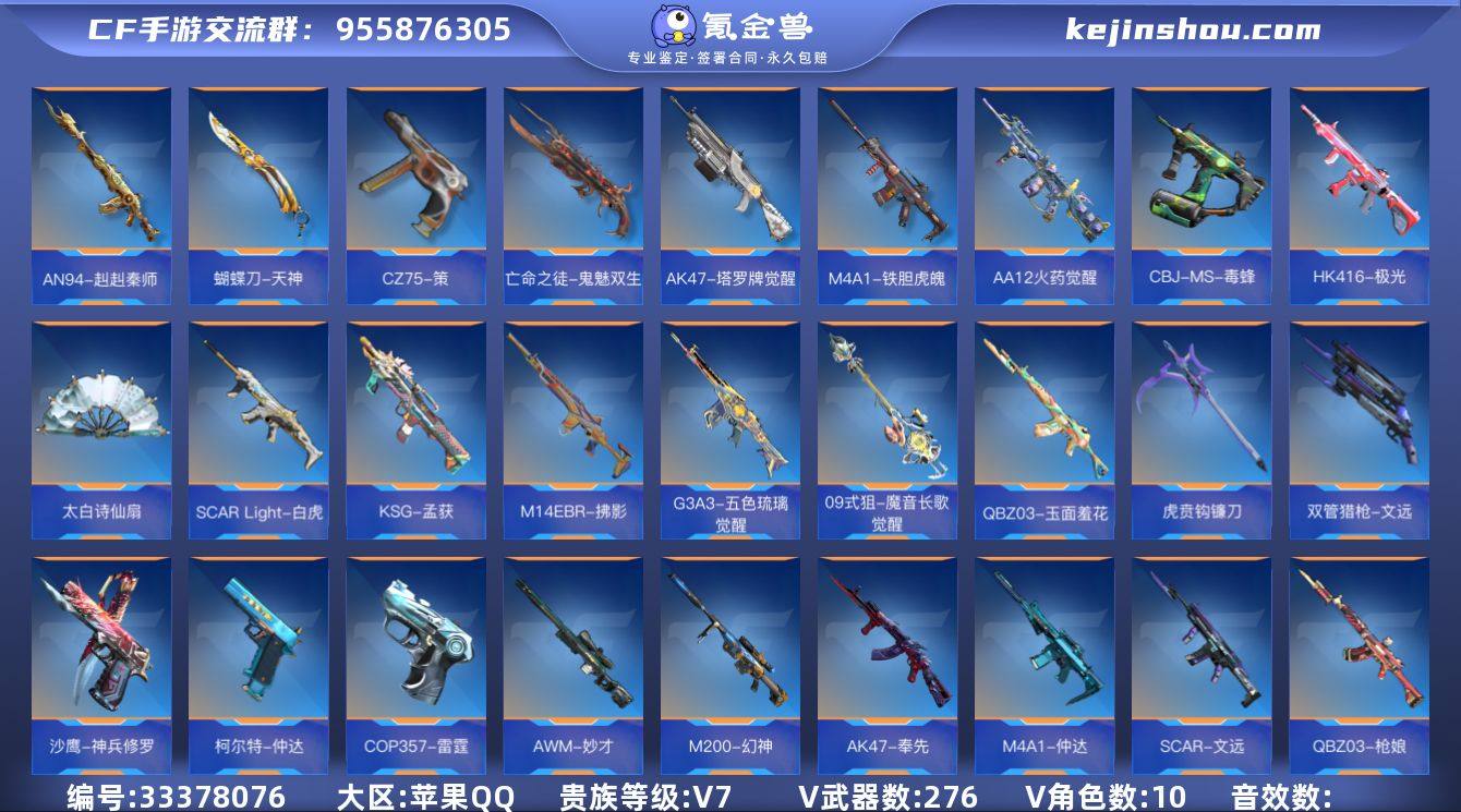 【CFMG1803】VIP7/276V/仲达套/奉先套/文远套/王者之影/王者之心/王者之蝶/王者之兽/王者之狱/王者之魂/王者之烈/王者之霆/QBZ03-王者蔷薇/COP357-雷霆王者/王者之尊/KSG-孟获/CZS2-仲康/AN94-盖/81式-光明之神/SCAR-文远/M4A1-仲达/AK47-奉先/M200-幻神/AWM-妙才/81式-阿波罗/COP357-雷霆/QBZ03-王者蔷薇-冰霜奇迹/COP357-雷霆王者-冰霜奇迹/幽灵刀锋-觉醒/关小雨/乔月/蔡文昭/凌霄/炽天使-X/祝融夫人/零-新生/步练师/刀锋-枪战王者/AK47-无影/AK47-沙漠领主/AK47-木兰/AK47-塔罗牌觉醒/AK47-谜城烟火/M4A1-雷神/M4A1-黑骑士/M4A1-黑龙/M4A1-死神/M4A1-运输船/M4A1-铁胆虎魄/SCAR-幽暗骑士/SCAR Light-白虎/SCAR-心动PICK/AN94-四凶觉醒/AN94-赳赳秦师/AUG-机械纪元/FAMAS-湮灭/M14EBR-拂影/M14EBR-葫芦山庄/QBZ03-金色蔷薇/QBZ03-死神/QBZ03-枪娘/QBZ03-玉面羞花/HK416-极光/HK417-炎龙铠甲/G36-李星云/MK47-云舞/G3A3-五色琉璃觉醒/G3A3-衍神兵/QBZ97-浩瀚征途/AWM-天龙/AWM-裁决/巴雷特-毁灭/巴雷特-极光/09式狙-天神/09式狙-魔音长歌觉醒/98K-黑骑士/98K-星神/SR25-燃烧泰坦/RPK-赤炎盘龙/加特林-堡垒/加特林-蟒蛇/MG36-魔礼青/QBB95-极光/MK5-极光/寒霜烈龙/双持斯泰尔...