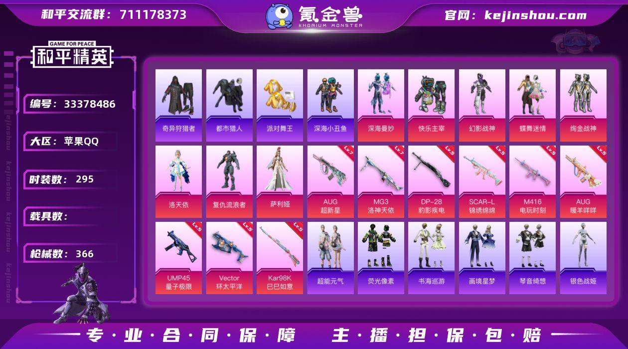 YZJ16781 无二次 苹果Q-6稀有8粉装13特效枪29热门295套装366枪皮 112067热力值 极品小身法素材号 地铁满天赋 满级AUG超新星 满级信号枪金乌曜日 幻影战神 洛天依 花仙子 快乐主宰 绚金战神 都市 金鞋 红眼罩 奇异狩猎者 深海小丑鱼 鲨鱼服 狂沙 忍者信条 天命 软萌银虎 NV战队服 满级MG3洛神天依 满级M4电玩 15印记 历史超级王牌18星 【6稀有】 奇异狩猎者 AKM-缤纷海域 都市猎人 浪漫天命 派对舞王 派对舞王(金靴子) 【8粉装】 蝶舞迷情 萨利娅 洛天依 深海曼妙 幻影战神 快乐主宰 绚金战神 复仇流浪者 【13特效枪】 SCAR-L-锦绣绵绵 (5级) M416-电玩时刻 (5级) AKS-74U-森灵之息 (5级) Kar98K-巳巳如意 (5级) DP-28-豹影疾电 (5级) AUG-暖羊咩咩 (5级) AUG-超新星 (7级) UMP45-量子极限 (5级) MG3-洛神天依 (7级) 信号枪-金乌曜日 (6级) Mk14-福马献瑞 (5级) ACE32-萌骑漫游 (3级) Vector-环太平洋 (5级) 【29热门】 Mark.06 小丑鱼 龟仙人 雪山精英 呆萌铁蟹 鹰眼刺客 软萌银虎 迅捷狂鲨 深海小丑鱼 NV战队服 暗影哥特 团圆交子 瑞龙福将 粉红小猪 忍者信条 狂沙舞者 漫步者 机械英豪 破蛋小黄鸡 风华少年志 白月香洋装 黑色刀锋 极速红龙 军刀雅典娜 英勇保护者 弄潮海...