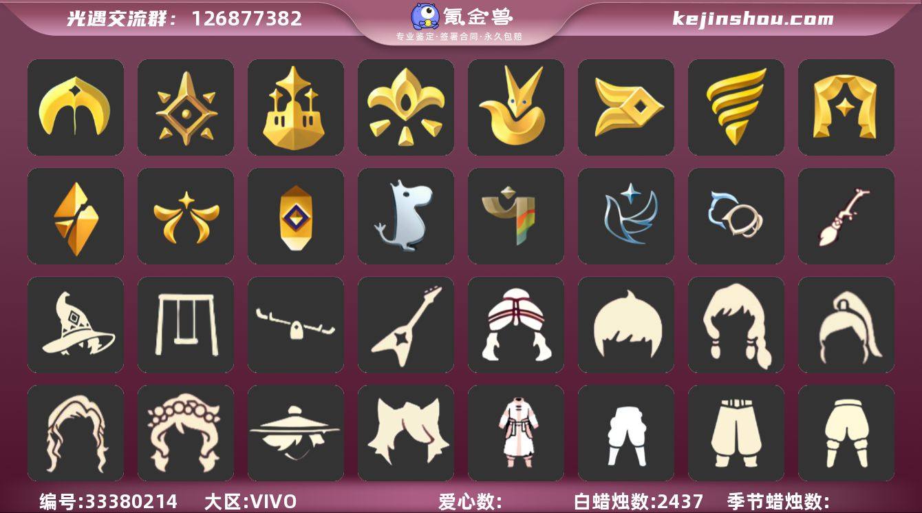 "15季蝙蝠阿努比斯白枭巫师绊爱tgc王子围巾星球夹克扫帚2k蜡多复刻 编号:YXB13180 区服:vivo 翼数量:132 季卡数:15 资源:蜡烛: 2437 爱心: 268 红蜡:6 已毕业地图:晨岛 云野 雨林 霞谷 暮土 禁阁 毕业季节:圣岛季 预言季 梦想季 集结季 小王子季 风行季 潜海季 表演季 破晓季 欧若拉季 追忆季 姆明季 彩染季 青鸟季 双星季 热门礼包:龙鳞束身套装 蝙蝠套 巫师帽 绊爱套 粽子发箍 星月王冠 金鳞耳坠 圣诞鹿角 tgc 小王子围巾 星球夹克 飞天扫帚 秋千 跷跷板 花憩茶桌 热门复刻:背带裤 彩虹链带 白棉裤 毛靴棉裤 搓澡巾 灯笼裤 紧身棉裤 工装裤 连体衣 武士裤 白毛绒裤 击剑连体衣 过膝长袍 小丑睡衣 狐狸面具 鼬鼠面具 老爷爷面具 修行面具 玫瑰花面具 圣诞铃铛 斗笠 蝴蝶结发型 公主头 粗辫 书虫 总裁头 正太 高马尾 明制帽 郡主 箬笠 花环 虚荣 平顶帽 猫猫头 圆环发辫 樱花发型 猫耳发型 单片羽毛 花环发饰 红耳机 断角发饰 兰花斗 荧蓝斗 幽兰斗 红金斗 黑金斗 白金斗 蔚紫斗 羽翼斗 道袍 飞鸟斗 小浣熊斗 花羽斗 海浪斗 彩虹斗 暗彩斗 圣诞斗 电吉他 冥龙号角 雨伞 小铲子 星星灯 女巫茶桌 圣诞板凳 "