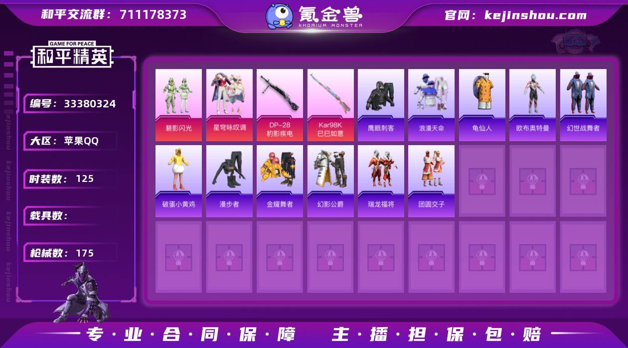 【956616】DYH18139【2粉装-4特效枪深海小丑鱼,浪漫天命】苹果手Q-2粉装-4特效枪-125套装-175枪皮-6王牌印记-不朽星钻Ⅳ-48534热力值【2粉装】星穹咏叹调,碧影闪光【4特效枪】Mk14-福马献瑞[5级],DP-28-豹影疾电[5级],Kar98K-巳巳如意[5级],UMP45-萌骑冒险[5级]【3稀有】深海小丑鱼,浪漫天命,M24-奇异狩猎者【5飞行器】破刃行动尾迹,天之羽翼飞行器,顶峰精英尾迹,异域银装飞行器,红色滑翔尾迹【1头盔】深海小丑鱼头盔【2背包】萌熊伴侣背包,幻影战神背包【291其它衣服和枪皮】千禧之恋,薄荷星砂,幻影公爵,福星高照,SS22特训,龙魂突击队,香桃花海,SS35特训,角色-军刀雅典娜,鹰眼刺客,涂山之恋,SS34特训,夏日音浪,蓝色运动,耀粉歌者,龙的传人,蓝调潮人,甜蜜熊情侣,魅力单车,玩偶服-懒羊羊,玉兔迎春,角色-欧布奥特曼,青春冒险家,SS30特训,冰川谧蓝,鹤鸣,冰河战士,野性山猫,空岛之星,柠萌假日,沙漠兵团,冰川特警,特战英豪,海盐绵绵冰,光之冒险,长空猛禽,SS33特训,黑色伏地魔,空投萌叽,SS26特训,牛气冲天,SS24特训,沙漠毒蛇,狙击之神,元气之梦,黎明保卫者,龟仙人,黄色运动,田园牧歌,破蛋小黄鸡,SS21特训,红釉青花,战术大师,黄色名流,青涩时光,SS32特训,顶瓜瓜,SS19特训,探宝勇士,龙...
