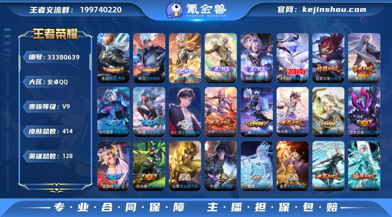 编号A00368 不可二次 v9 贵族积分11.3w 414皮肤 2典藏 3无双 1珍品传说 40传说 4星传说 碎月剑心 韩信-群星魔术团 器灵·螭龙剑 弑枪猎影 鸣剑·曳影 怪盗基德 白虎志 落雪白狼 浮生妄 凤求凰 至尊宝 武圣 锁墨魂 映山客 时雨天司 挚爱之约 深海之息 齐天大圣 夜礼服假面 永恒水手月亮 貂蝉-曦玄引 乘龙·淬吴钩 乘龙·问璇玑 乘龙·铭钟鼎 云中君-群星魔术团 金乌负