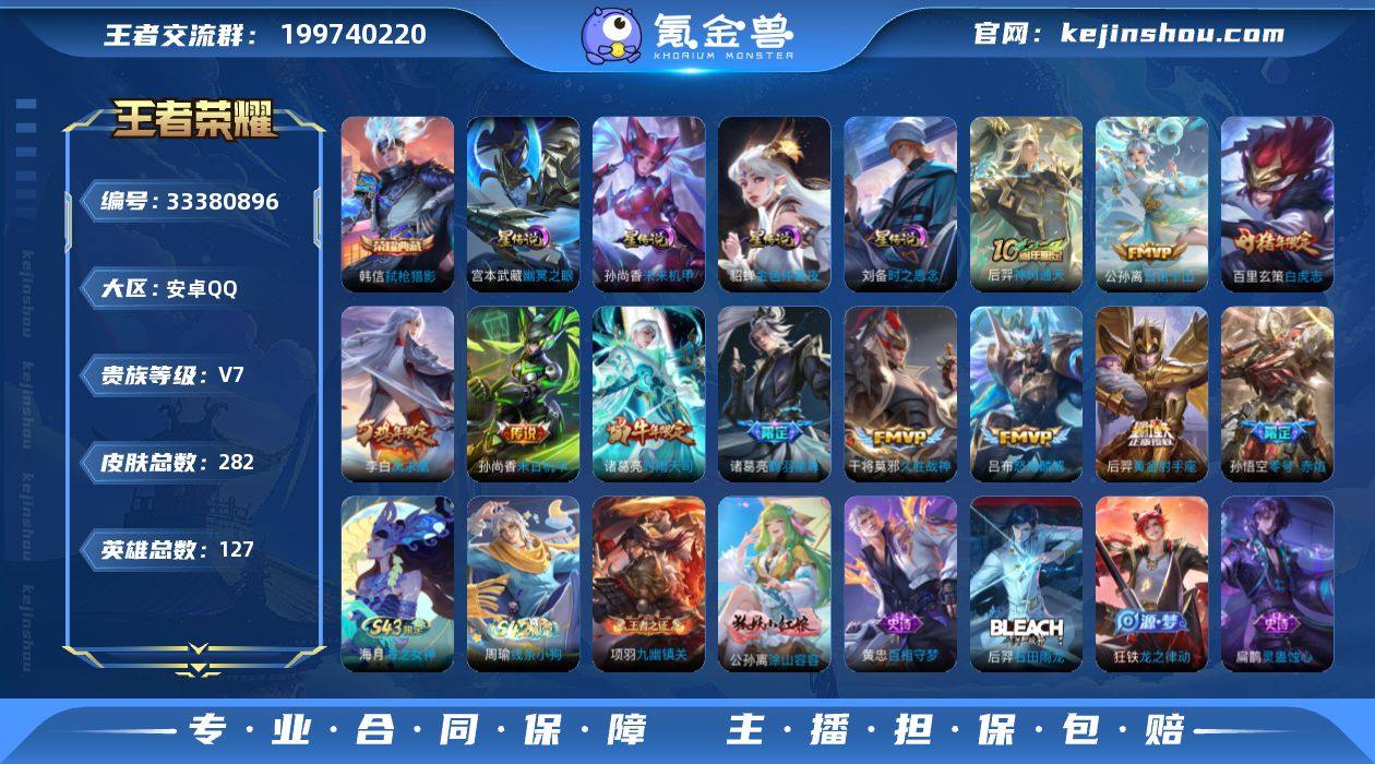 出一个贵7安卓QQ区王者荣耀账号 ,皮肤282款,英雄127个,贵族7级,收藏家56级,账号干净安全,附带省标孙尚香 标价就是价格,不支持压价,喜欢直接拍,随时聊~