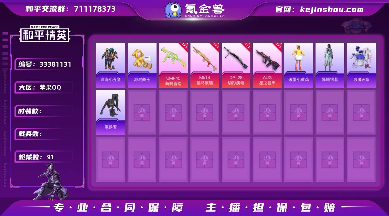 XS11543【特效枪6 浪漫天命 派对舞王 深海小丑鱼 AUG星之彼岸】苹果手Q-6特效枪-66套装-91枪皮-4王牌印记-不朽星钻Ⅴ-22639热力值【6特效枪】Mk14-福马献瑞[5级],DP-28-豹影疾电[5级],AUG-星之彼岸[5级],MG-36-沧焰双生[5级],AKS-74U-森灵之息[5级],UMP45-萌骑冒险[2级]【3稀有】浪漫天命,派对舞王,深海小丑鱼【6飞行器】破刃行动尾迹,炫彩糖果飞行器,异域银装飞行器,登顶巅峰飞行器,马上有福飞行器,狂鲨锋刃飞行器【1背包】深海小丑鱼背包【148其它衣服和枪皮】迅捷龙虾,漫步者,阳光火鸡,海岛探路者,猎鹰,福马献瑞,疯狂小兔子,狂鲨锋刃,狙击之神,战地督导,绮丽涂鸦,画境星梦,红釉青花,街头潮人,幻世战舞者,红色运动,竞技名士,雨过天青,特训学院,顶瓜瓜,王牌教练,柠萌假日,阳光菠萝,灼焰舞者,粉黛兰香,玲珑侠影,SS34特训,琴音绮想,角色-摩登魅猫,猛禽,SS37特训,萌鸡速递,长空猛禽,凌霄紫焰,SS38特训,竞技达人朋克,蓝色运动,角色-超感刻度,马上来财,黄色名流,朱霞炽焰,SS36特训,冷焰舞者,破蛋小黄鸡,魅力单车,旭日情侣,幻影武者,雪国风尚,白色伏地魔,炫彩糖果,白糯汤圆,元气之梦,异域银装,SS35特训,云魄琉璃,青翼流星,蓝彩潮人,湖蓝色名流,遗迹猎人,黑色伏地魔,电音精灵,香桃...