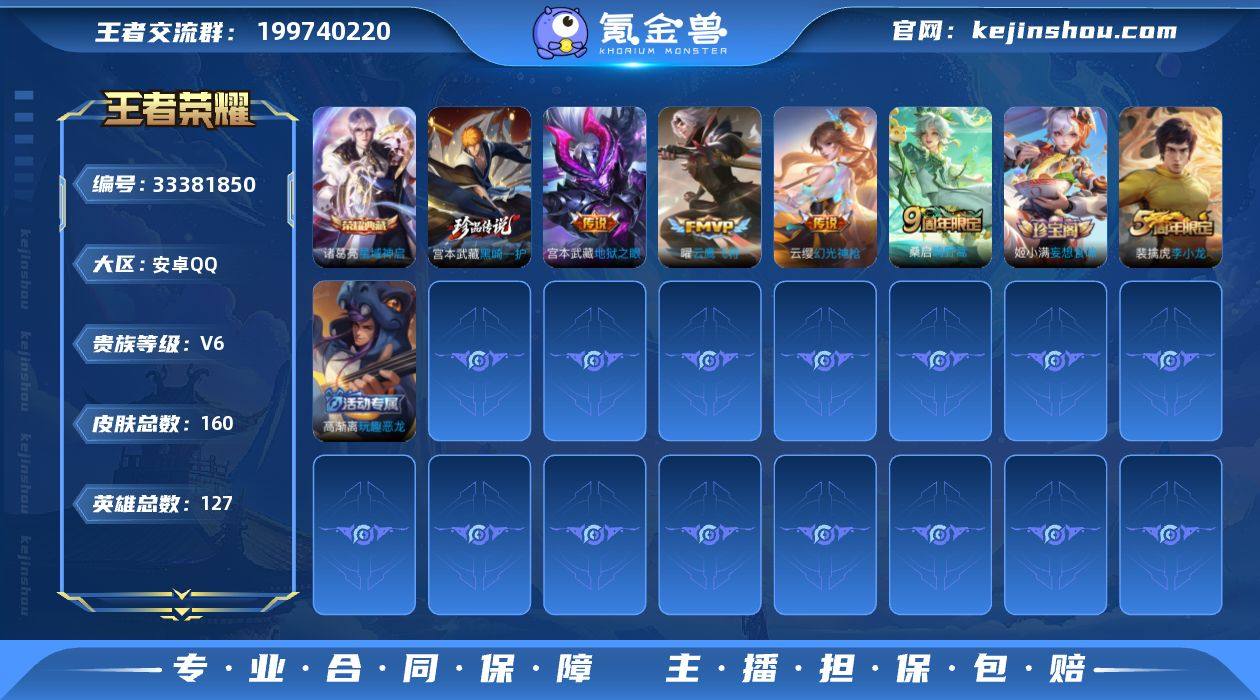 安卓Q 可二次 万战司空震 1典藏1珍品传说5传说127英雄160皮肤 星域神启 黑崎一护 幻光神枪 愿照九州拓 鸣野蒿 云鹰飞将 地狱之眼 涂山容容 谪仙醉月 山海玄木吟 冰冠公主 原初追逐者 黎明之约 暗夜猫娘 黄忠百相守梦 灵蛊蚀心 百解令 电玩爆裂旋风 天秀启明 李小龙 水晶猎龙者 暗隐猎兽者 猫狗日记男 金属风暴 特工魅影 特工战影 黄金分割率 玩趣恶龙 妄想食味 逐浪之夏 修罗 心灵骇客 圣诞恋歌 幽灵船长 乘风破浪 节奏热浪 天才门将 暗夜贵公子 鹰眼统帅 魔术师 顽趣梦奇 王者荣耀账号
