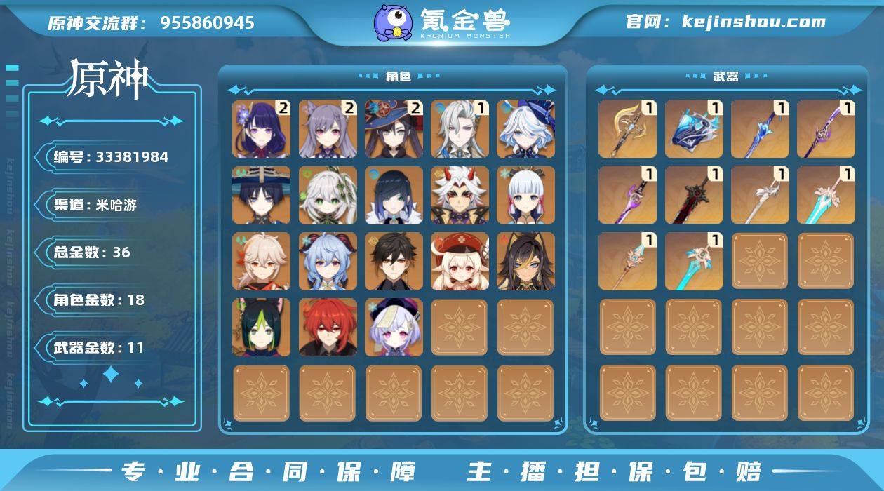 58级/36黄/女主/18个五星角色/11个五星武器 0命芙宁娜,1命那维莱特,0命迪希雅,0命流浪者,0命纳西妲,0命提纳里,0命夜兰,0命荒泷一斗,2命雷电将军,0命枫原万叶,0命神里绫华,0命钟离,0命甘雨,0命可莉,2命刻晴,0命七七,2命莫娜,0命迪卢克,精1裁断,精1万世流涌大典,精1波乱月白经津,精1薙草之稻光,精1雾切之回光,精1天空之脊,精1天空之刃,精1风鹰剑,精1狼的末路,精1天空之傲