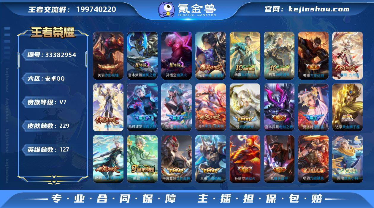 ky 安卓(q)区 229皮 1典藏 19传说 81限定 13王者印记 2星 亮点推荐:【乘龙·淬吴钩 落雪白狼 万灵伏威 神树通天 纵目迁山 神骥·逐星野】道具内容:16按键 349亲密玫瑰 74浓情玫瑰