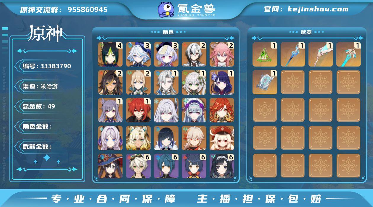 【原神】冒险等级:60,五星数量:26,五星角色:提纳里 * 4命,芙宁娜 * 3命,七七 * 3命,迪希雅 * 2命,阿蕾奇诺 * 2命,琴 * 2命,八重神子 * 2命,那维莱特 * 1命,迪卢克 * 1命,刻晴 * 1命,雷电将军 * 1命,纳西妲 * 1命,莫娜,希诺宁,玛薇卡,茜特菈莉,梦见月瑞希,夜兰,丝柯克,枫原万叶,可莉__五星武器:静水流涌之辉,真语秘匣,四风原典,天空之刃,天空之翼__四星角色:班尼特 * 6命,行秋 * 6命,香菱 * 6命,鹿野院平藏 * 6命,瑶瑶 * 6命,柯莱 * 6命,芭芭拉 * 6命,蓝砚 * 6命,托马 * 6命,烟绯 * 6命,重云 * 6命,诺艾尔 * 6命,菲谢尔 * 6命,夏沃蕾 * 6命,嘉明 * 6命,绮良良 * 5命,卡维 * 5命,云堇 * 5命,北斗 * 5命,琳妮特 * 5命,夏洛蒂 * 5命,赛索斯 * 5命,九条裟罗 * 4命,久岐忍 * 4命,珐露珊 * 4命,凝光 * 4命,迪奥娜 * 4命,坎蒂丝 * 4命,辛焱 * 4命,卡齐娜 * 3命,莱依拉 * 3命,米卡 * 3命,多莉 * 3命,罗莎莉亚 * 3命,雷泽 * 3命,伊安珊 * 3命,砂糖 * 2命,伊法 * 2命,早柚 * 1命,菲米尼 * 1命,塔利雅 * 1命,爱诺 * 1命,五郎,叶洛亚