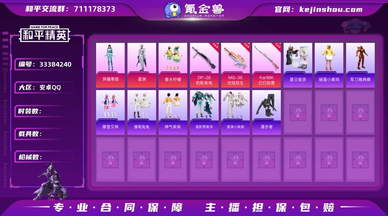 DSH2507【6特效枪 3粉 】安卓手Q-3粉装-6特效枪-107套装-179枪皮-5王牌印记-不朽星钻Ⅴ-48310热力值【3粉装】角色 异瞳寒姬 香水柠檬 角色 鸢尾珑雾【6特效枪】MG-36-沧焰双生[5级],Mk14-福马献瑞[5级],DP-28-豹影疾电[5级],Kar98K-巳巳如意[5级],AKS-74U-森灵之息[5级],ACE32-萌骑漫游[4级]【7飞行器】狂鲨锋刃飞行器,光之冒险尾迹,炫彩糖果飞行器,破刃行动尾迹,登顶巅峰飞行器,粉色滑翔尾迹,鸡智如我飞行器