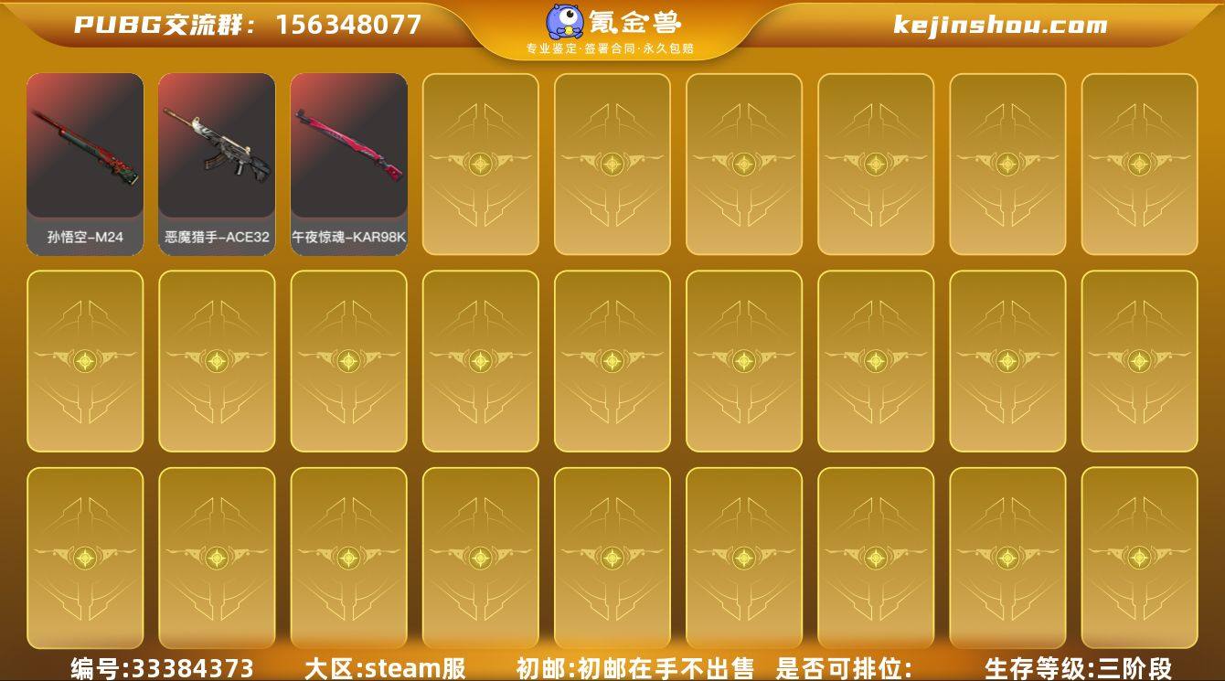 账号来源: 自营 初邮情况: 初邮在手不出售 热门装扮: 金面具,黑鬼