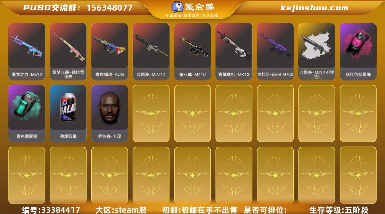 CC16176/可排位/2段/359级/7张图纸/烟雾弹/小丑男/8级霓虹AUG/1级青龙/1级小兔MK12/小兔MK12异色/金面/黑鬼/白熊