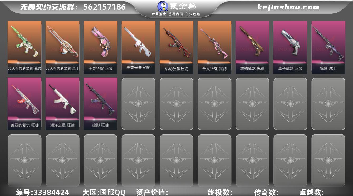 【sf256】【英雄】:幻棱,炼狱,维斯,暮蝶,钛狐,壹决,铁臂,捷风,雷兹,幽影,不死鸟,贤者,猎枭,蝰蛇,零,芮娜,奇乐,尚勃勒,霓虹,斯凯,夜露,星礈,K/O,海神,盖可,黑梦,钢锁 【近战武器】:近战武器-神之刃,近战武器-奇点//2.0 蝴蝶刀,近战武器-镭切,近战武器-艾沃莉的魔法棒,近战武器-诡秘蛇影 军刀,近战武器-日耀风暴 遗器 【狂徒】:狂徒-机动狂飙,狂徒-塑水宗,狂徒-超时空卫队,狂徒-掠影,狂徒-盖亚的复仇,狂徒-海洋之星,狂徒-诡秘蛇影 【幻影】:幻影-电音光谱,幻影-异鳞魔蛇,幻影-末日之翼,幻影-电音光谱 【戍卫】:戍卫-掠影,戍卫-折光棱晶 【冥驹】:冥驹-千灵华绽 【飞将】:飞将-末日之翼 【莽侠】:莽侠-诡秘蛇影 【奥丁】:奥丁-艾沃莉的梦之翼,奥丁-末日之翼 【判官】:判官-诡秘蛇影 【骇灵】:骇灵-艾沃莉的梦之翼 【蜂刺】:蜂刺-折光棱晶 【标配】:标配-折光棱晶 【VCT手枪】:标配-VCT25 x BLG 【正义】:正义-千灵华绽,正义-离子武器 【鬼魅】:鬼魅-耀鳞威龙,鬼魅-诡秘蛇影 【短炮】:短炮-末日之翼 【卡面】:孵化小能手:破壳鸭 卡面,银弹猎手 卡面,无畏契约:暮蝶 卡面,树懒大作战 卡面,无畏契约GO!第一卷...