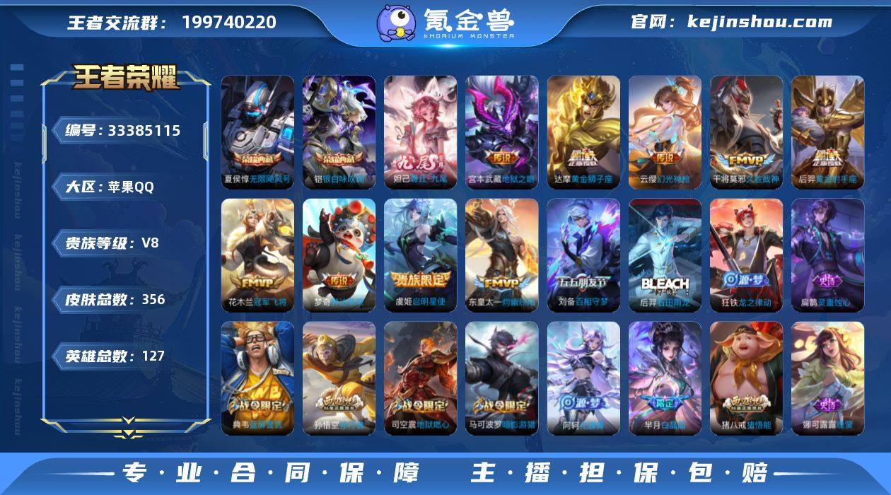 编号A00473 可二次 v8 356皮肤 2典藏 2无双 1珍品传说 10传说 问心剑 青丘·九尾 银·白咏叹调 无限飓风号 沧流箭 器灵·浮梦炉 孙行者 白晶晶 幻光神枪 冠军飞将 灼幽烈阳 启明星使 胖达荣荣 地狱之眼 黄金射手座 久胜战神 黄金狮子座 匿光决锋者 逐浪之夏 刘备-百相守梦 万物之道 玩趣恶龙 女武神 无心 暗影游猎 安琪拉-时之奇旅 冰冠公主 街头霸王 暗夜猫娘 黄金分割率