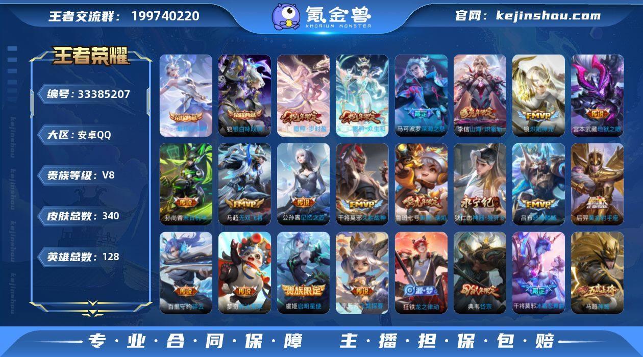 编号A00478 不可二次 v8 340皮肤 2典藏 18传说 最初的交响 银·白咏叹调 神威 愿照·岁时盈 愿照·众生和 寅虎·瑞焰 神器·狴犴令 深海之息 山海·炽霜斩 孙行者 蜜橘之夏 一生所爱 冰霜恋舞曲 朱雀志 寅虎·御盾 岱宗 烈魂 飞鸢探春 怒海麟威 记忆之芯 碎云 冰锋战神 启明星使 胖达荣荣 地狱之眼 炽阳神光 黄金射手座 孙尚香-末日机甲 久胜战神 无双飞将 天狼溯光者 逐浪之