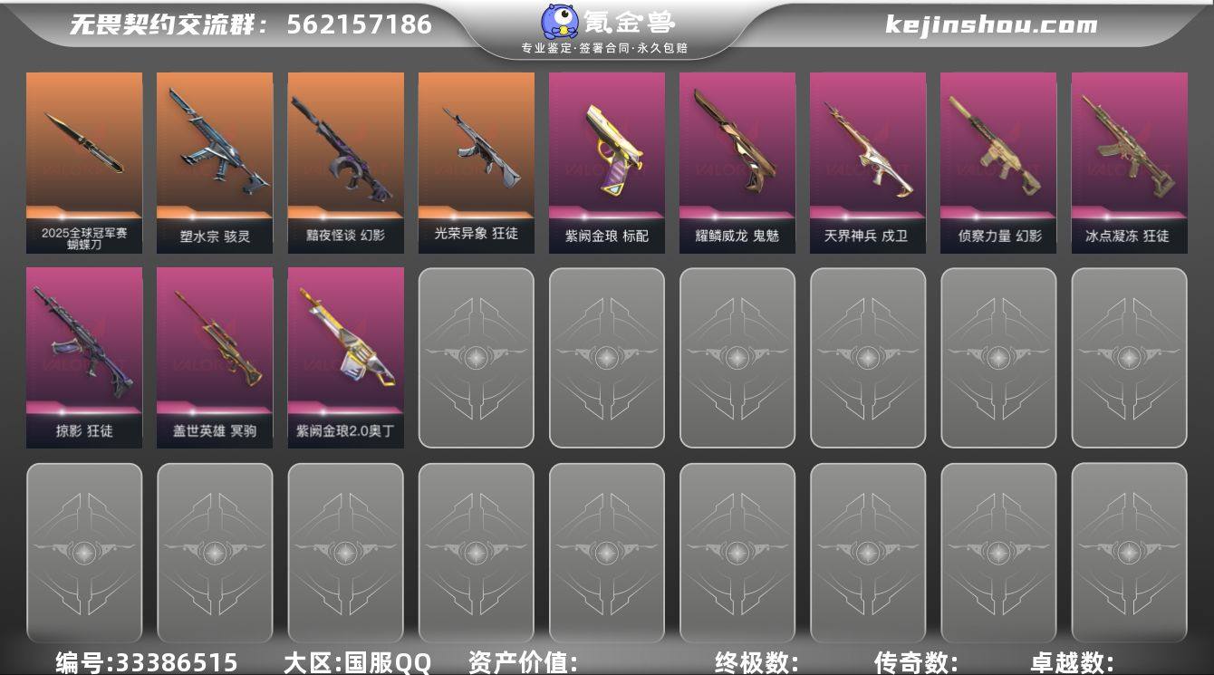 【sf300】【套装】:2025全球冠军赛套装,光荣异象套装 【英雄】:幻棱,炼狱,维斯,暮蝶,钛狐,壹决,铁臂,捷风,雷兹,幽影,不死鸟,贤者,猎枭,蝰蛇,零,芮娜,奇乐,尚勃勒,霓虹,斯凯,夜露,星礈,K/O,海神,盖可,黑梦,钢锁 【近战武器】:近战武器-2025全球冠军赛 蝴蝶刀,近战武器-碎心裂刃,近战武器-5周年//公测重制版 苍龙之刃,近战武器-光荣异象 歧途,近战武器-镭切,近战武器-日耀风暴 遗器,近战武器-阿特拉斯指挥部 甩棍,近战武器-星际猎兵 短剑 【狂徒】:狂徒-2025全球冠军赛,狂徒-归零者,狂徒-RGX 11z Pro,狂徒-光荣异象,狂徒-多弥尔的复仇,狂徒-ORA x 颗秒,狂徒-千灵华绽//2.0,狂徒-超时空卫队,狂徒-冰点凝冻,狂徒-掠影,狂徒-赤焰铁骥,狂徒-神罚//2.0 【幻影】:幻影-黯夜怪谈,幻影-侦察力量 【戍卫】:戍卫-天界神兵 【冥驹】:冥驹-光荣异象,冥驹-盖世英雄 【战神】:战神-千灵华绽//2.0 【奥丁】:奥丁-紫阙金琅//2.0 【判官】:判官-光荣异象 【骇灵】:骇灵-塑水宗,骇灵-无限竞技 【标配】:标配-光荣异象,标配-紫阙金琅 【正义】:正义-ORA x 颗秒,正义-游戏结束 【鬼魅】:鬼魅-耀鳞威龙 【卡面】:孵化小能手:破壳...