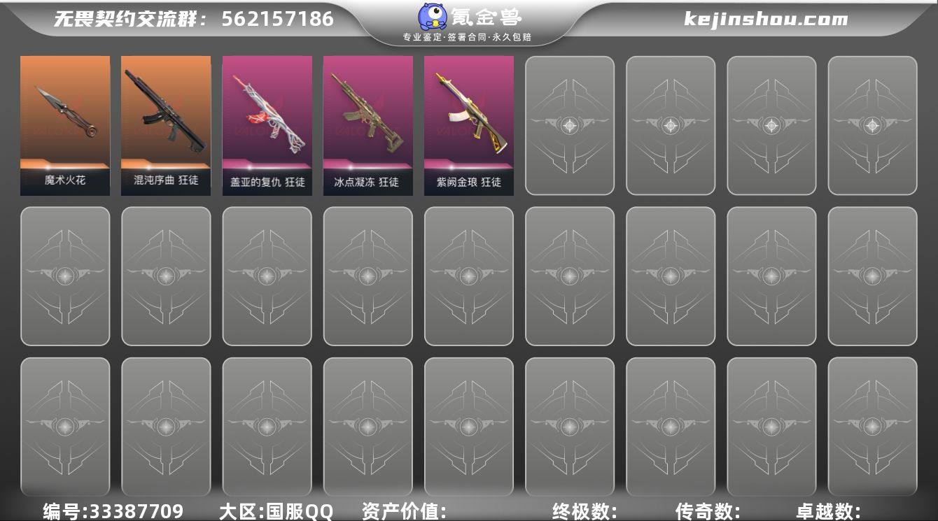 【sf324】【英雄】:幻棱,炼狱,维斯,暮蝶,钛狐,壹决,铁臂,捷风,雷兹,幽影,不死鸟,贤者,猎枭,蝰蛇,零,芮娜,奇乐,尚勃勒,霓虹,夜露,K/O,盖可,黑梦,钢锁 【近战武器】:近战武器-魔术火花,近战武器-剥皮小刀,近战武器-魔术火花 【狂徒】:狂徒-归零者,狂徒-混沌序曲,狂徒-塑水宗,狂徒-冰点凝冻,狂徒-盖亚的复仇,狂徒-紫阙金琅 【标配】:标配-超能偶像 【正义】:正义-西部未来,正义-掠影,正义-超限闪存,正义-传奇制造,正义-复古浪潮,正义-纳米打击 【鬼魅】:鬼魅-流星兵团,鬼魅-诡秘蛇影,鬼魅-光导纤维,鬼魅-星云暗涌 【卡面】:终章:激斗汉堡 卡面,进入射程 卡面,《双城之战》拥抱 卡面,精灵大战 卡面,欢迎来到底城 卡面,南瓜盛典 卡面,VCT CN首冠 卡面,修车达人 卡面,热舞环节 卡面,正义的化身 卡面,终章:生意人麦宝 卡面,铁之华 卡面,时间到 卡面,最高舞台 卡面,树懒大作战 卡面,声感陷阱设计图 卡面,梦幻奶茶 卡面,终章:打造专属狂徒 卡面,趁热吃 卡面,源能反应 卡面,零点嗅探设计图 卡面,终章:瓦娃脸雪糕 卡面,表象之下 卡面,沙雕爆能器 卡面,无畏契约GO!第一卷:芮娜 卡面,清除名单 卡面,无畏契约...