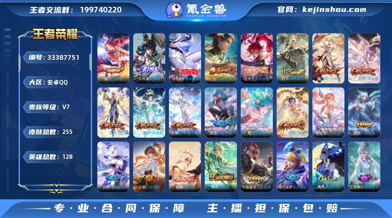 【956705】V7 1典藏 1无双 1珍品传说 19传说 128英雄 255皮肤 可二次 可修改实名 优质女号 【英雄全皮】少司缘全皮,敖隐全皮,空空儿全皮,孙权全皮,蚩奼全皮,影全皮,大禹全皮 【稀有英雄】敖隐(小龙人),大司命,韩信(韩跳跳),夏洛特(夏师傅),艾琳,橘右京(橘子),娜可露露(鸟人),不知火舞,赵云,金蝉(唐僧),戈娅 【荣耀水晶】拾光映像(瑶典藏) 【无双皮】离恨烟(公孙离无双) 【珍品传说】怪盗基德 【传说皮】异界灵契-花木兰,神骥·赴朔漠,朵莉亚心动手记,落雪白狼,貂蝉曦玄引,幻光神枪,神树通天,游龙清影(小青龙),大乔-时之奇旅,久胜战神,妄想实况 【珍宝阁皮】万物之道,蔷薇恋人 【赛季/战令皮】噬灭天穹(s37),古海寻踪(s33),海盐诗旅(s30),擒涛扼浪(s31),探海日志(s32),玲珑珍味,剑破天穹(s35),天穹祈灯(s34),青焰无极,苍威无极,天穹之誓(s36),蔡文姬夏日便利店,虞姬夏日便利店,暖冬·兔眠,穷奇(s12),御狮(s13),御霄(s14),混沌棋(s18),疑决卦(s19),朔望之晖,暗影游猎(游乐娃子),云间偶戏,真爱魔法,金庭之子(s27),大漠名商(s28),云中旅人(s29) 【史诗皮】百晓客,海之女神,破空之剑,百相守梦-百里守约,茶境仙,星界战将,涂山红红,器灵·浮梦炉,蒙犽顽岩魄,东方月初,琥珀纪元伽罗,乘龙...