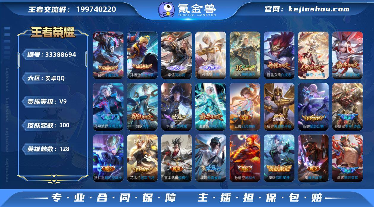 【956762】【wzxb61】安卓Q-V9-至尊星耀III段位-128英雄-300皮肤-2典藏皮肤-2无双-19传说-78史诗 【荣耀典藏】:孙悟空全息碎影,吕布千魇归渊 【无双皮肤】:李信问心剑,孙悟空无相 【传说皮肤】:后羿神树通天,澜愿照九州拓,云缨幻光神枪,宫本武藏惊梅引,马可波罗深海之息,公孙离祈雪灵祝,诸葛亮时雨天司,铠绛天战甲,虞姬启明星使,孙悟空零号赤焰,李信一念神魔,伽罗太华,貂蝉猫影幻舞,虞姬云霓雀翎,百里玄策白虎志,花木兰冠军飞将,后羿黄金射手座,孙悟空地狱火,狄仁杰超时空战士 【限定皮肤】:狄仁杰阴阳师,赵云皇家上将,赵云龙胆,墨子神迹守卫,妲己热情桑巴,鲁班七号狮舞东方,庄周云端筑梦师,芈月重明,周瑜赤莲之焰,元歌云间偶戏,元歌无心,曹操天狼征服者,马可波罗暗影游猎,马可波罗深海之息,狄仁杰魔术师,狄仁杰万华元夜,达摩星际陆战队,达摩沙漠行僧,项羽海滩派对,老夫子航海奇遇记,安琪拉魔法小厨娘,程咬金演武夺筹,露娜一生所爱,刘邦夺宝奇兵,韩信飞衡,王昭君午后时光,兰陵王驯魔猎人,花木兰瑞麟志,花木兰默契交锋,亚瑟潮玩骑士王,孙悟空大圣娶亲,孙悟空零号赤焰,后羿辉光之辰,后羿圣弓游侠,李元芳银河之约,李...