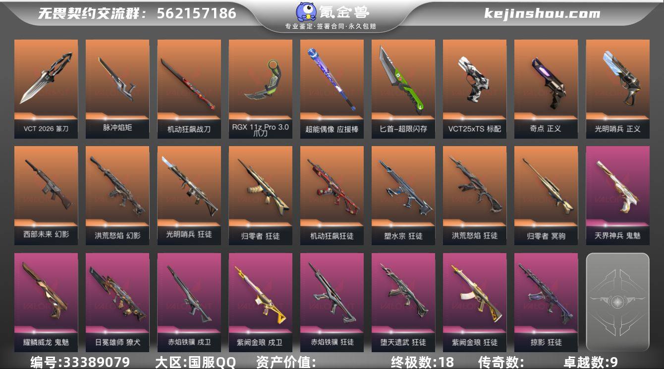 【956934】【wwxb288】【套装】:VCT 2026 赛季套装,赤焰铁骥套装 【英雄】:幻棱,炼狱,维斯,暮蝶,钛狐,壹决,铁臂,捷风,雷兹,幽影,不死鸟,贤者,猎枭,蝰蛇,零,芮娜,奇乐,尚勃勒,霓虹,斯凯,夜露,星礈,K/O,海神,盖可,黑梦,钢锁 【近战武器】:近战武器-VCT 2026 篆刀,近战武器-脉冲焰矩,近战武器-RGX 11z Pro//3.0 爪刀,近战武器-超能偶像 应援棒,近战武器-超限闪存 匕首,近战武器-机动狂飙 战刀 【狂徒】:狂徒-光明哨兵,狂徒-归零者,狂徒-洪荒怒焰,狂徒-机动狂飙,狂徒-塑水宗,狂徒-堕天遗武,狂徒-掠影,狂徒-紫阙金琅,狂徒-赤焰铁骥,狂徒-超能偶像 【幻影】:幻影-洪荒怒焰,幻影-西部未来,幻影-超限闪存,幻影-神圣领域,幻影-聚合之力,幻影-西部未来 【戍卫】:戍卫-紫阙金琅,戍卫-赤焰铁骥,戍卫-超能偶像,戍卫-浮光跃金 【獠犬】:獠犬-日冕雄师,獠犬-采蜜小蜂队,獠犬-模拟赫兹 【冥驹】:冥驹-归零者,冥驹-模拟赫兹 【飞将】:飞将-聚合之力 【莽侠】:莽侠-超限闪存 【战神】:战神-泰坦兵器,战神-神圣领域,战神-采蜜小蜂队,战神-浮光跃金 【判官】:判官-超能偶像,判官-采蜜小蜂队 【雄鹿】:雄鹿-模拟赫兹,雄鹿-...