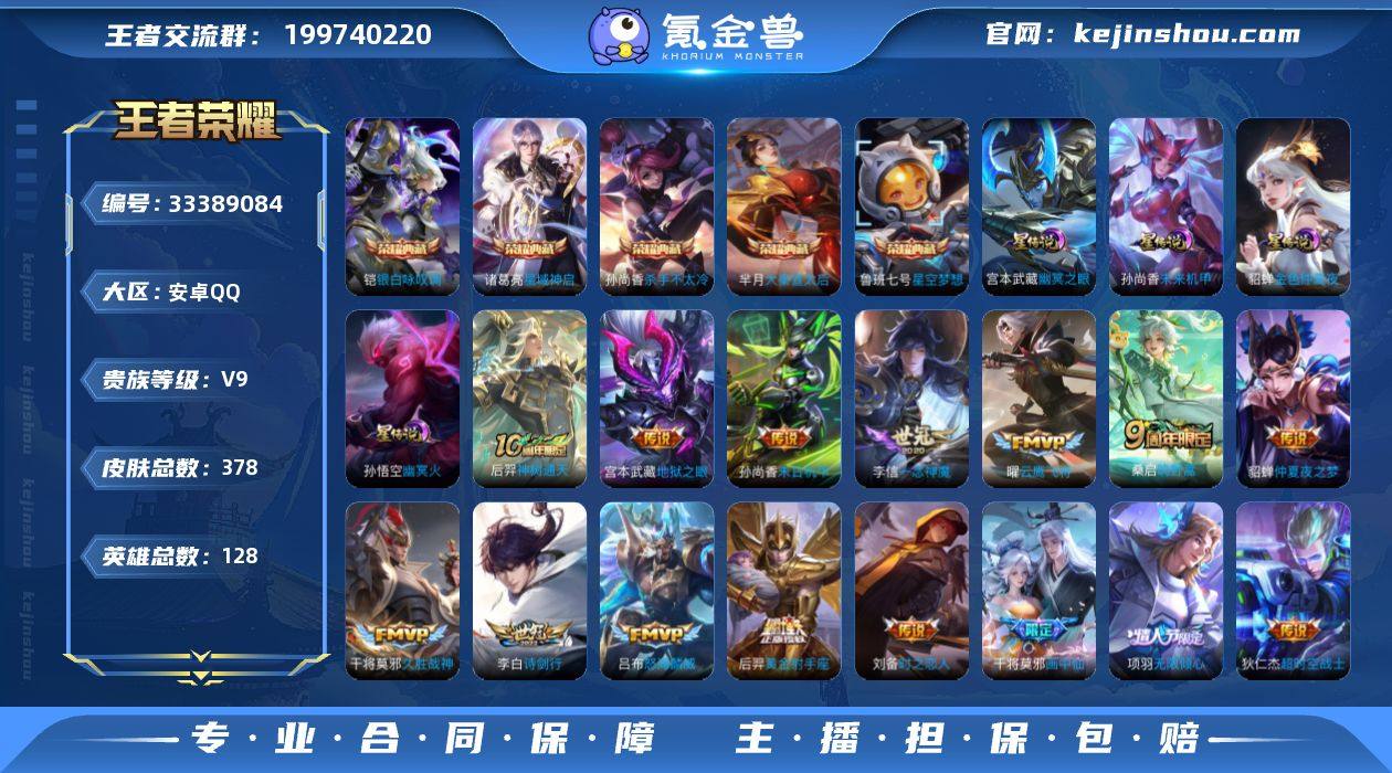 【高性价比·杀手不太冷·星空梦想·大秦宣太后·星域神启·银白咏叹调·画中仙·炽翼辉光·绛天战甲·燃星之曲·项羽无限倾心·怒海麟威·诗剑行·一念神魔·云霓雀翎·幻夜逐光天幕·可二次】YXw13542-安卓Q-127英雄-376皮肤-21王者印记-190铭文-贵族积分12w【贵族9】【5典藏·4星传说·27传说·1天幕·1按键】【因赛季更新游戏段付以上号为准!】 【英雄全皮】:刘邦全皮,孙权全皮,戈娅全皮,影全皮 【荣耀典藏】:孙尚香杀手不太冷,鲁班七号星空梦想,芈月大秦宣太后,诸葛亮星域神启,铠银白咏叹调 【星元皮肤】:孙尚香未来机甲,孙悟空幽冥火,宫本武藏幽冥之眼,貂蝉金色仲夏夜 【天幕】:幻夜逐光天幕 【传说皮肤】:后羿神树通天,桑启鸣野蒿,澜电玩雷克斯,张飞百相守梦,干将莫邪画中仙,花木兰燃星之曲,项羽无限倾心,伽罗炽翼辉光,吕布怒海麟威,李白诗剑行,孙尚香音你闪耀,铠绛天战甲,虞姬启明星使,曜云鹰飞将,李信一念神魔,刘备时之恋人,张良黄金白羊座,干将莫邪久胜战神,虞姬云霓雀翎,花木兰冠军飞将,梦奇胖达荣荣,后羿黄金射手座,貂蝉仲夏夜之梦,孙尚香末日机甲,宫本武藏地狱之眼,孙悟空地狱火,狄仁杰超时空战士 【限定皮肤】:蔡文姬夏日便利店,虞姬夏...