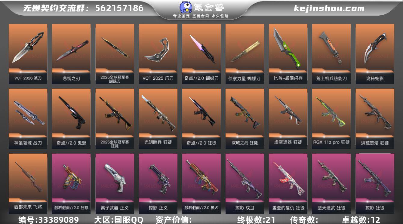 【956984】【wwxb483】【套装】:2025全球冠军赛套装,VCT 2026 赛季套装,无畏契约季前邀请赛套装,VCT 2025 赛季套装,奇点//2.0套装,掠影套装,般若假面//2.0套装 【英雄】:幻棱,炼狱,维斯,暮蝶,钛狐,壹决,铁臂,捷风,雷兹,幽影,不死鸟,贤者,猎枭,蝰蛇,零,芮娜,奇乐,尚勃勒,霓虹,斯凯,夜露,星礈,K/O,海神,盖可,黑梦,钢锁 【近战武器】:近战武器-2025全球冠军赛 蝴蝶刀,近战武器-VCT 2026 篆刀,近战武器-无畏契约季前邀请赛 悲悯之刃,近战武器-侦察力量 蝴蝶刀,近战武器-奇点//2.0 蝴蝶刀,近战武器-VCT 2025 爪刀,近战武器-鬼丸国纲,近战武器-超限闪存 匕首,近战武器-荒土机兵 热能刀,近战武器-影刃,近战武器-诡秘蛇影 军刀,近战武器-神圣领域 战刀 【狂徒】:狂徒-2025全球冠军赛,狂徒-光明哨兵,狂徒-洪荒怒焰,狂徒-奇点//2.0,狂徒-双城之战,狂徒-虚空遗器,狂徒-RGX 11z Pro,狂徒-般若假面//2.0,狂徒-堕天遗武,狂徒-掠影,狂徒-盖亚的复仇,狂徒-荒土机兵,狂徒-诡秘蛇影 【幻影】:幻影-超限闪存,幻影-神圣领域,幻影-纳米打击,幻影-末日之翼 【戍卫】:戍卫-掠影,戍卫-浮光跃金,戍卫-逆冲蛮牛,戍卫-月球哨兵,戍卫...