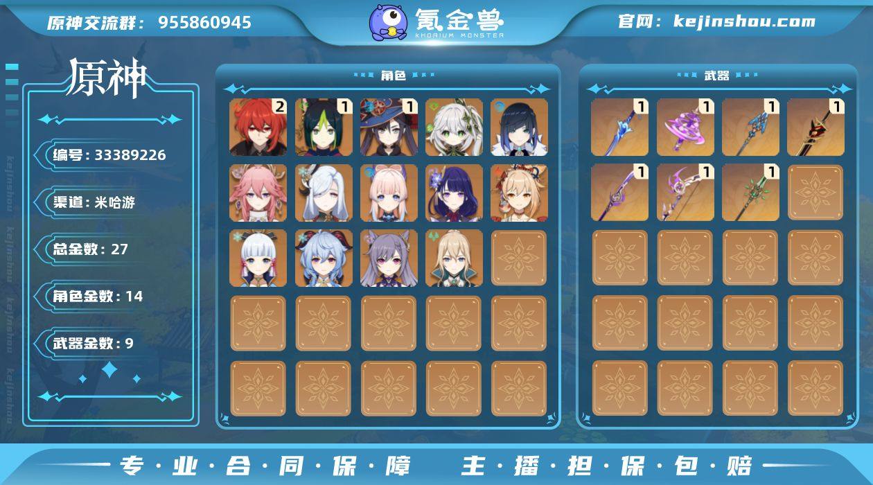 【AYY904】58级/27黄/女主/14个五星角色/9个五星武器/八重神子/雷电将军/纳西妲/珊瑚宫心海/申鹤/甘雨/神里绫华/刻晴/宵宫/琴/夜兰/一命提纳里/一命莫娜/二命迪卢克/飞雷之弦振/神乐之真意/薙草之稻光/息灾/和璞鸢/赤角石溃杵/波乱月白经津