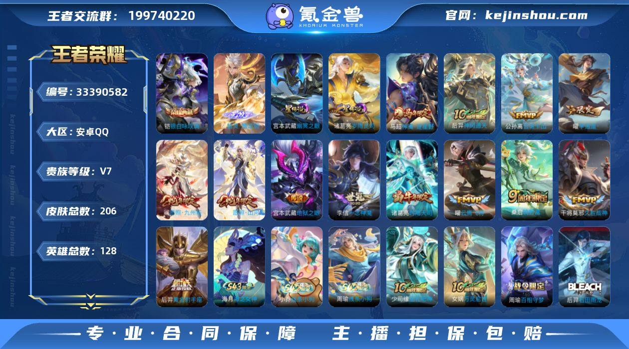 CHC11275,安卓Q-V7-永恒钻石I段位-128英雄-206皮肤-1典藏皮肤-1无双-13传说-62史诗 【英雄全皮】:孙权全皮,影全皮 【荣耀典藏】:铠银白咏叹调 【无双皮肤】:曜器灵螭龙剑 【传说皮肤】:马超神骥逐星野,后羿神树通天,公孙离云诺千山,司空震愿照山河定,澜愿照九州拓,桑启鸣野蒿,曜李逍遥 ,诸葛亮时雨天司,曜云鹰飞将,李信一念神魔,干将莫邪久胜战神,后羿黄金射手座,宫本武藏地狱之眼 【限定皮肤】:暃埋骨钱,蒙犽顽岩魄,姜子牙天穹之誓,杨戬破阵退雄兵,狄仁杰阴阳师,赵云皇家上将,孙尚香蔷薇恋人,元歌云间偶戏,元歌无心,马可波罗山海玄木吟,狄仁杰魔术师,狄仁杰万华元夜,项羽海滩派对,老夫子醍醐杖,程咬金演武夺筹,亚瑟潮玩骑士王,钟馗驱傩正仪,干将莫邪胡桃夹子,鬼谷子原初探秘者,诸葛亮时雨天司,苏烈千军破阵,百里玄策原初追逐者,裴擒虎李小龙,云中君纤云弄巧,曜李逍遥 ,桑启海盐诗旅,张良古海寻踪,蒙犽百解令,妲己灵卜魔法,鬼谷子天穹祈灯,伽罗琥珀纪元,沈梦溪龙舞盛年,李元芳蔬乡物语,刘邦剑破天穹,程咬金群星魔术团,芈月浮光幕影,周瑜熔金海岸 【年限皮肤】:诸葛亮时雨天司,马可波罗山海玄木吟,司空震愿照山河定...