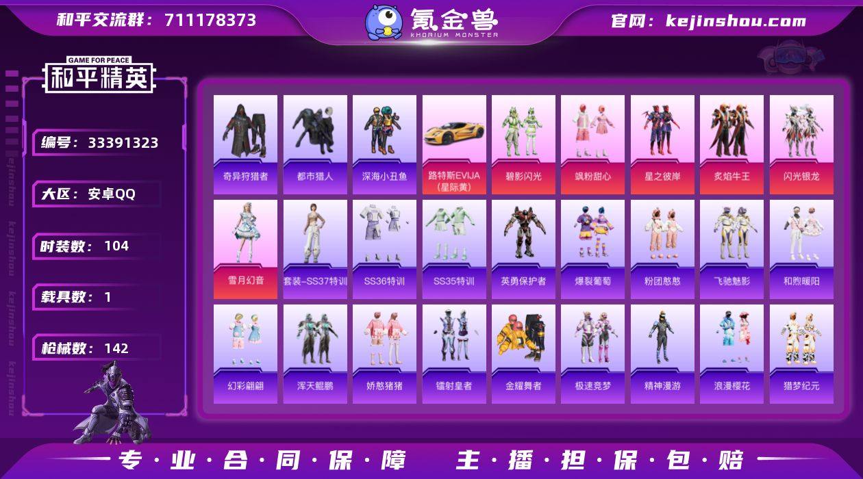 【和平精英】6粉装,8特效枪,1载具,历史最高段位:超级王牌12星 王牌印记17次 热力值:94757,213套装,286枪械,366装备,174战备;套装:套装-星之彼岸,套装-碧影闪光,套装-炙焰牛王,套装-闪光银龙,套装-飒粉甜心,套装-雪月幻音,套装-特训学院,套装-猎鹰,套装-橘黑制服,套装-红色运动,套装-黄色运动,套装-蓝色运动,套装-黑色伏地魔,套装-骑行爱好者,套装-竞技名士,套装-深蓝色名流,套装-湖蓝色名流,套装-黄色名流,套装-长空猛禽,套装-漫步者,套装-竞技勇士朋克,套装-海岛探路者,套装-雨林探路者,套装-冷焰舞者,套装-灼焰舞者,套装-都市猎人,套装-浪漫天命,套装-特战装甲,套装-战地菁英,套装-贵族骑装,套装-战地督导,套装-春日漫步,套装-滨海假日,套装-沙漠毒蛇,套装-鹰眼刺客,套装-冰冻风暴,套装-完美偶像,套装-人气偶像,套装-幻影武者,套装-街头潮人,套装-暗金炫舞,套装-蓝彩潮人,套装-千禧之恋,套装-神秘领域,套装-魅力单车,套装-绮丽涂鸦,套装-耀眼新星,套装-坚韧舞者,套装-野性战心,套装-破晓战魂,套装-森林游猎者,套装-都市魅力,套装-荣耀,套装-热血青春,套装-潮流炫酷,套装-沙漠兵团,套装-雪山精英,套装-酷...