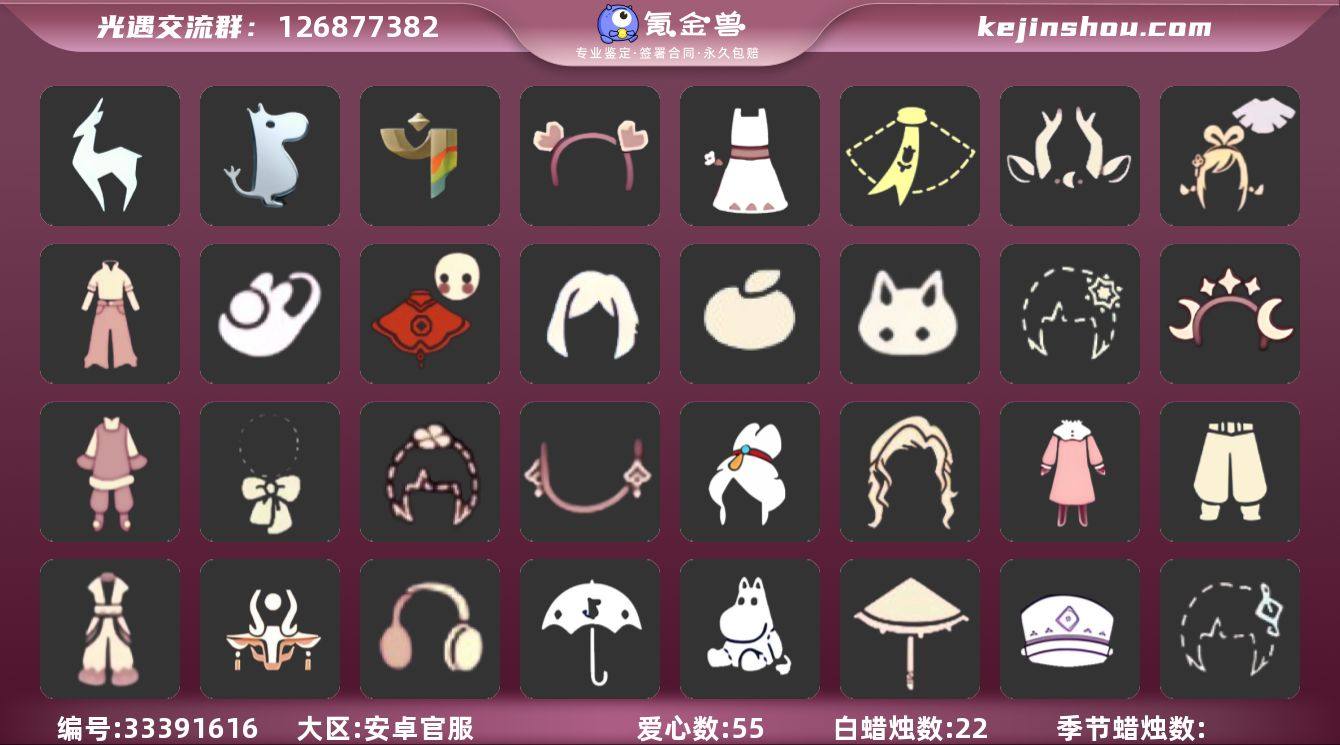 账号类型: 手机账号 季节已毕业: 九色鹿季,姆明季,彩染季 完成地图: 雨林,霞谷,暮土 礼包: 围巾,九色鹿角,绊爱,牛仔裤,兔子鞋,福娃,奔跑发型,橘子,兔子,雪花,星月头饰,新年裤,蝴蝶结,四叶草,新年耳钉,向日葵连衣裙,心心相印发饰礼包 裤子: 武士裤,妮妮裙子,飞天裤 面具: 辉光羚羊面具 面饰: 红耳机 发型: 虚荣,飞天盘发 头饰: 蓝色音乐会,平顶帽 斗篷: 绿芽,彩染围巾斗篷 配饰: 雨伞,姆明抱枕,小红伞 亮点: 【优质装备】:武士裤,妮妮裙子(妮妮长裙),姆明抱枕,小红伞(姆明红伞)(姆明大伞),九色鹿(九色鹿季),飞天裤(柔缎花边连)(九色鹿丝带裤),姆明季,辉光羚羊面具,彩染季,飞天盘发(九色鹿丸子头),福娃(福娃礼包)(春之日礼包)(铜钱斗),绊爱(绊爱斗篷)(绊爱礼包),红耳机,围巾(小王子斗篷)(小王子围巾),九色鹿角(神鹿祝福头饰)(神鹿祝福礼包),牛仔裤(阔腿牛仔),新年裤(瑞气服饰),雨林,霞谷,墓土(暮土),兔子鞋(兔子拖鞋),向日葵连衣裙(连衣裙),星月头饰(星月头冠),蝴蝶结(大蝴蝶结),奔跑发型(奔离远行发),兔子(玉兔头饰)(玉兔发饰)(兔子发饰),心心相印发饰礼包,雪花(雪花发夹),新年耳钉(金鳞耳饰),橘子(大橘大利),四叶草(四叶草头饰)