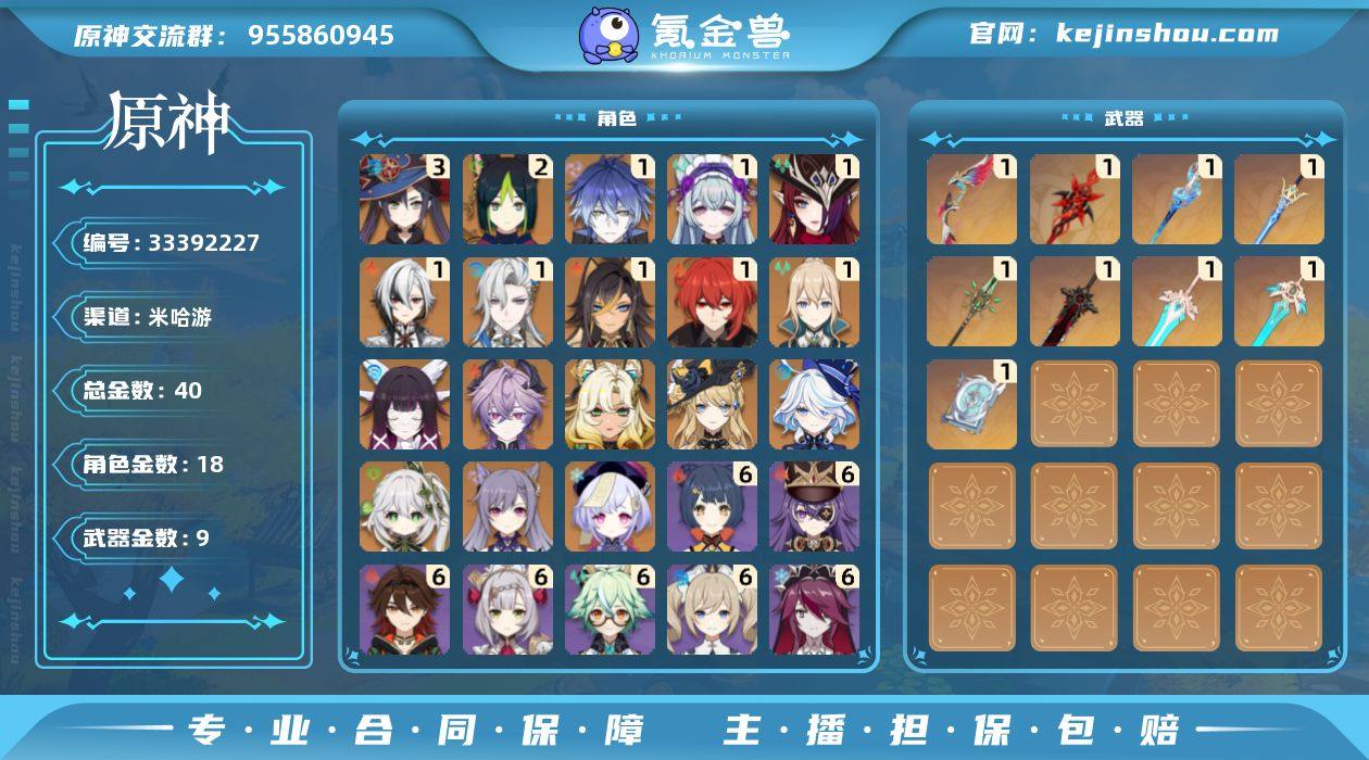 40黄!月感电战舰!龙芙!魔导队!1命菲林斯!1+1恰斯卡!1+1仆人!1命龙王!杜林!三命莫娜 二命提纳里 一命迪卢克,一命琴,一命迪希雅,一命那维莱特,一命阿蕾奇诺,一命恰斯卡,一命梦见月瑞希,一命菲林斯 七七,刻晴,纳西妲,芙宁娜,娜维娅,希诺宁,杜林,哥伦比娅 拥有武器: 狼的末路,四风原典,和璞鸢,天空之傲,天空之刃,苍古自由之誓,静水流涌之辉,赤月之形,星鹫赤羽 1精武器: 狼的末路,四风原典,和璞鸢,天空之傲,天空之刃,苍古自由之誓,静水流涌之辉,赤月之形,星鹫赤羽 亮点: tap已注销