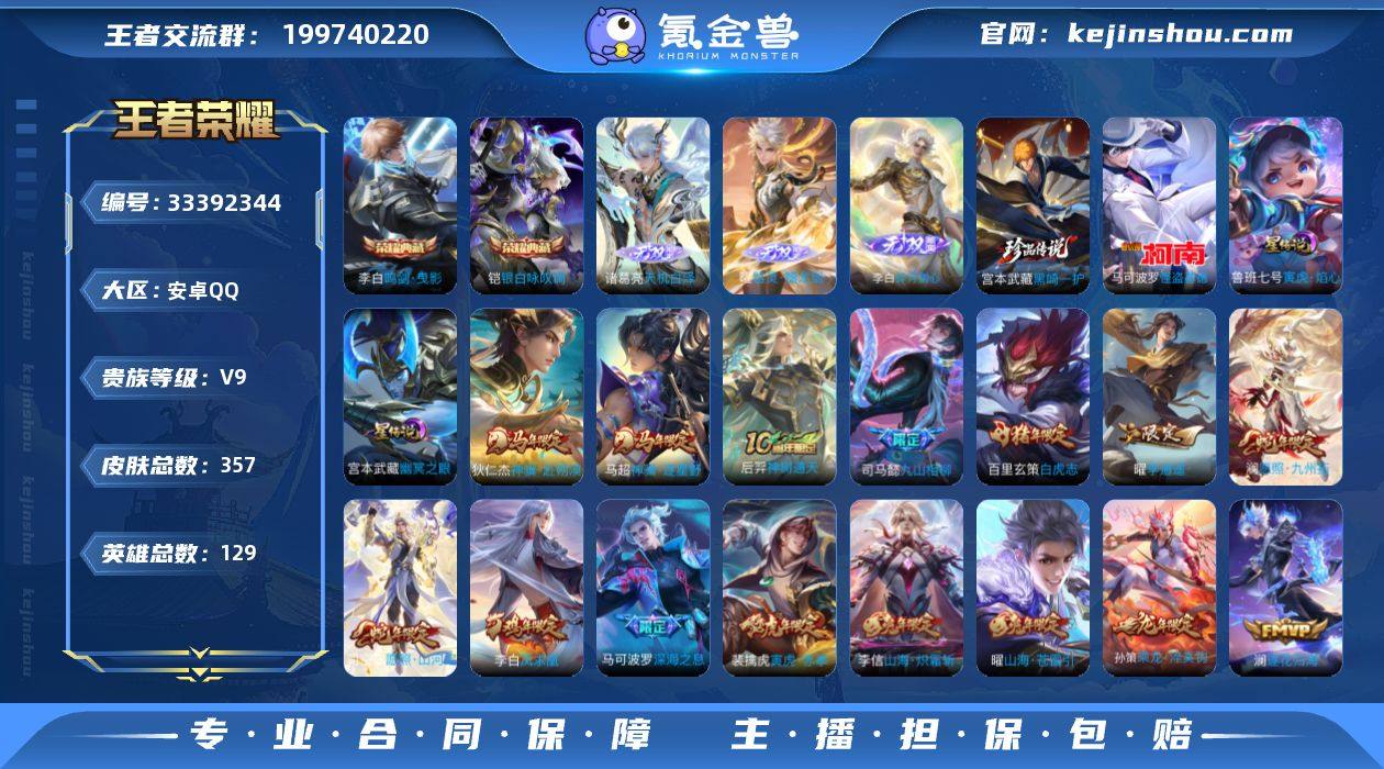 可解绑【精品v9号推荐·3打野无双皮·打野双典藏皮·双珍品·怪盗基德马可·多打野传说皮·龙限赵云·鹤归松栖·鹤羽星尊·多限定皮·李逍遥·白虎志·凤求凰·贵族积分10w】 3星传说 1灵宝 29按键 100312贵族积分 130五级铭文 8王者印记 可二次安卓Q-V9-357皮肤-2典藏皮肤-3无双-2珍品传说-42传说-98史诗【英雄全皮】:李白全皮,孙权全皮,刘备全皮,百里玄策全皮,敖隐全皮,曜全皮,澜全皮,司空震全皮,赵怀真全皮,戈娅全皮,空空儿全皮,影全皮【荣耀典藏】:李白鸣剑曳影,铠银白咏叹调【无双皮肤】:诸葛亮天机白泽,曜器灵螭龙剑,李白碎月剑心【珍品传说】:宫本武藏黑崎一护,马可波罗怪盗基德【星元皮肤】:宫本武藏幽冥之眼,刘备时之思念,鲁班七号寅虎焰心【传说皮肤】:狄仁杰神骥赴朔漠,马超神骥逐星野,后羿神树通天,司马懿九山相柳,司空震愿照山河定,澜愿照九州拓,云缨幻光神枪,裴擒虎祥瑞亨通,桑启鸣野蒿,孙策乘龙淬吴钩,赵云乘龙铭钟鼎,澜逐花归海,兰陵王影龙天霄,吕布遇见神鼓,云缨鹤归松栖,诸葛亮鹤羽星尊,澜电玩雷克斯,张飞百相守梦,夏洛特浮生妄,孙悟空齐天大圣,曜山海苍雷引,李信山海炽霜斩,吕布怒海麟威,李白诗剑行,马可波罗深海之息,...