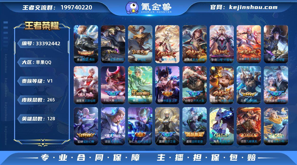 王者20751,无二次,,苹果Q-V8-永恒钻石IV段位-128英雄-265皮肤-1典藏皮肤-19传说-81史诗 【英雄全皮】:孙权全皮,空空儿全皮 【荣耀典藏】:李白鸣剑曳影 【传说皮肤】:澜愿照九州拓,桑启鸣野蒿,孙策乘龙淬吴钩,干将莫邪画中仙,项羽无限倾心,孙悟空齐天大圣,李信山海炽霜斩,吕布怒海麟威,不知火舞绯月行,露娜启示之音,裴擒虎寅虎赤拳,鲁班七号寅虎瑞焰,曜李逍遥 ,虞姬启明星使,李信一念神魔,貂蝉猫影幻舞,诸葛亮武陵仙君,貂蝉仲夏夜之梦,狄仁杰超时空战士 【限定皮肤】:狄仁杰阴阳师,廉颇寅虎御盾,赵云皇家上将,墨子神迹守卫,妲己时之奇旅,嬴政优雅恋人,鲁班七号寅虎瑞焰,庄周高山流水,高渐离死亡摇滚,钟无艳超时空战士,扁鹊奇幻香踪,白起夜都怪侠,芈月幻夜卜梦,元歌无心,甄姬落雪兰心,典韦岱宗,马可波罗山海玄木吟,狄仁杰魔术师,达摩沙漠行僧,项羽海滩派对,项羽无限倾心,老夫子航海奇遇记,程咬金演武夺筹,露娜启示之音,韩信逐梦之影,韩信傲雪梅枪,王昭君午后时光,兰陵王金庭之子,花木兰青春决赛季,不知火舞绯月行,孙悟空孙行者,孙悟空齐天大圣,后羿如梦令,后羿圣弓游侠,李元芳云中旅人,虞姬启明星使,钟馗驱傩正...
