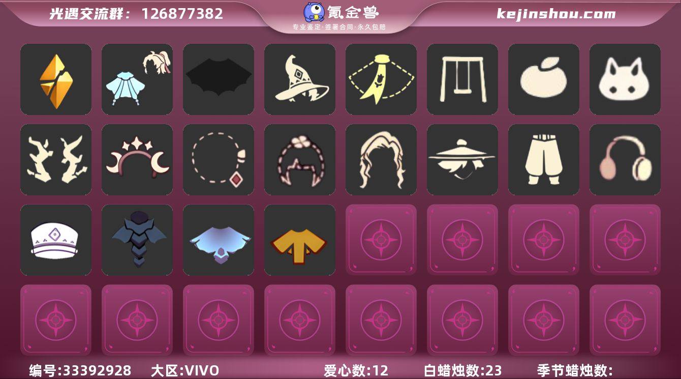 账号类型: 手机账号 季节已毕业: 破晓季 完成地图: 霞谷,暮土 礼包: 蝙蝠套,巫师,围巾,秋千,橘子,兔子,枯角,星月头饰,彩虹耳钉,四叶草,青衫落拓礼包 裤子: 武士裤 面饰: 红耳机 发型: 若笠,虚荣 头饰: 平顶帽 斗篷: 黄色蓑衣,遥鲲斗篷,冥龙斗篷 亮点: 【优质装备】:武士裤,破晓季,遥鲲斗篷(双翼遥鲲斗),冥龙斗篷,蝙蝠套(蝙蝠斗篷)(南瓜头),秋千(情人秋千),红耳机,围巾(小王子斗篷)(小王子围巾),巫师(巫师帽),霞谷,墓土(暮土),若笠(箬笠),枯角(巫树犄角),星月头饰(星月头冠),青衫落拓礼包,兔子(玉兔头饰)(玉兔发饰)(兔子发饰),彩虹耳钉(彩虹耳饰),橘子(大橘大利),四叶草(四叶草头饰)