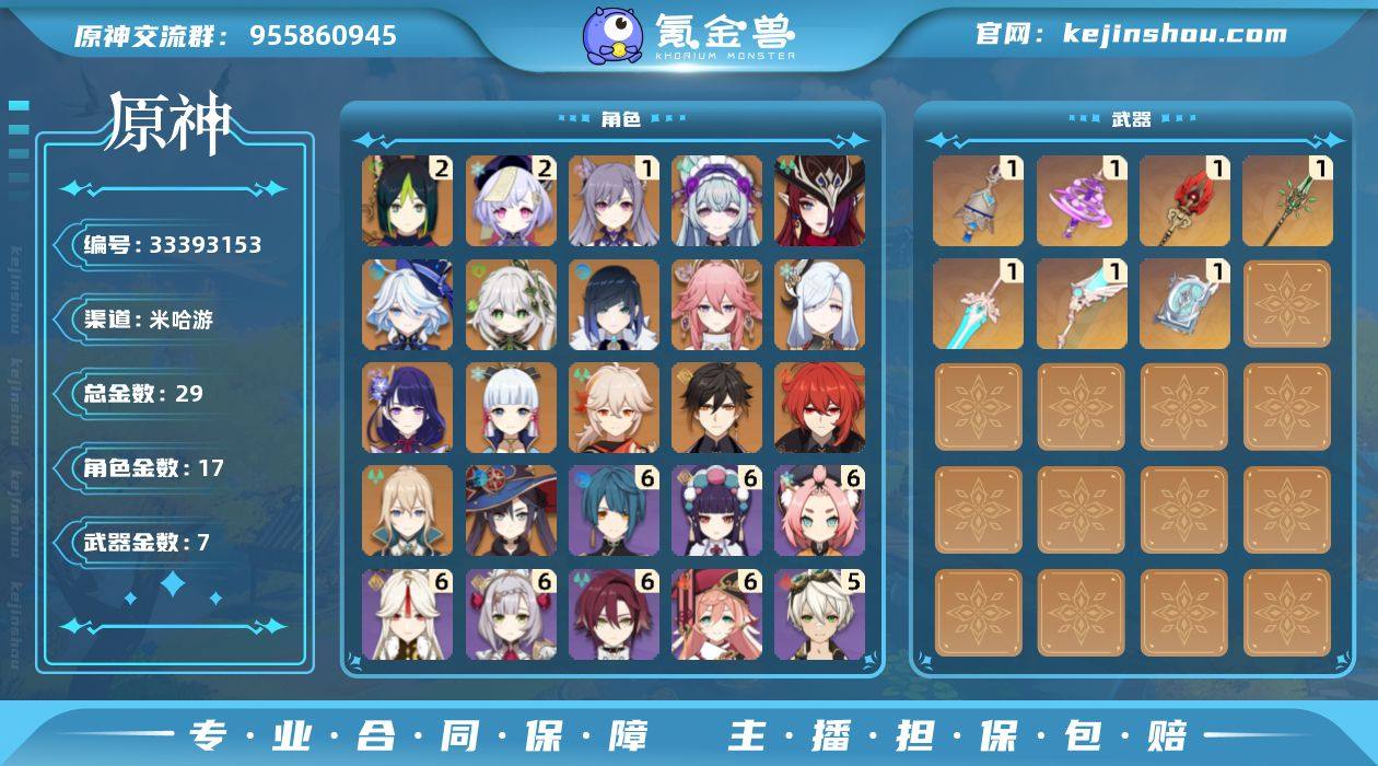 高练成品多金,核心命座+专武齐全 角色:,关键命座配齐 武器:主C专武都有,圣遗物毕业 进度:全图探索满,深渊稳满星 资源:原石/纠缠,材料储备充足 安全:可全换绑,