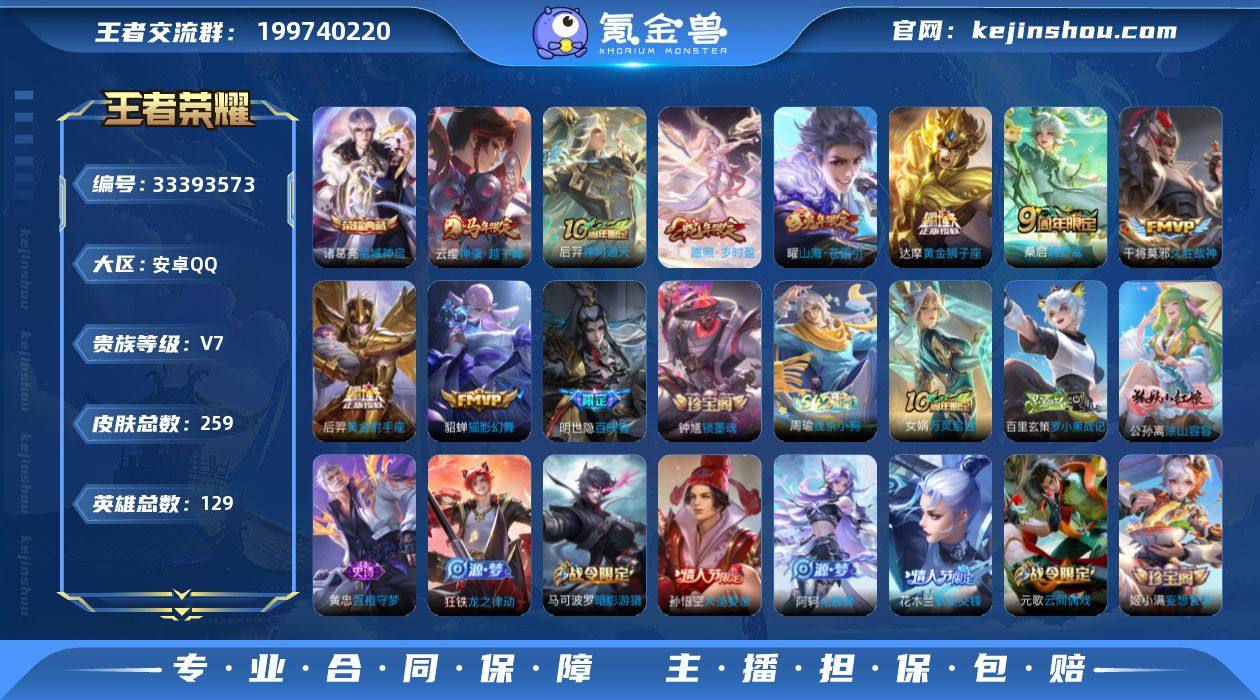 安卓Q-V7-至尊星耀III段位-129英雄-259皮肤-1典藏皮肤-9传说-80史诗 【荣耀典藏】:诸葛亮星域神启 【传说皮肤】:云缨神骥越千峰,后羿神树通天,虞姬愿照岁时盈,桑启鸣野蒿,曜山海苍雷引,貂蝉猫影幻舞,干将莫邪久胜战神,达摩黄金狮子座,后羿黄金射手座 【限定皮肤】:姜子牙天穹之誓,狄仁杰阴阳师,赵云皇家上将,墨子神迹守卫,孙尚香蔷薇恋人,庄周高山流水,高渐离玩趣恶龙,孙膑天狼运算者,白起夜都怪侠,芈月幻夜卜梦,元歌云间偶戏,元歌无心,甄姬游园惊梦,马可波罗暗影游猎,狄仁杰魔术师,狄仁杰万华元夜,达摩星际陆战队,达摩沙漠行僧,项羽海滩派对,老夫子醍醐杖,老夫子航海奇遇记,程咬金演武夺筹,兰陵王金庭之子,花木兰默契交锋,亚瑟潮玩骑士王,孙悟空大圣娶亲,后羿圣弓游侠,李元芳云中旅人,钟馗驱傩正仪,干将莫邪真爱魔法,雅典娜单词大作战,雅典娜黎明之约,蔡文姬繁星吟游,鬼谷子原初探秘者,鬼谷子五谷丰年,黄忠火炮绅士,苏烈千军破阵,百里玄策原初追逐者,弈星混沌棋,梦奇顽趣,沈梦溪大漠名商,明世隐疑决卦,明世隐吟游魔法,裴擒虎李小龙,裴擒虎擒涛扼浪,米莱狄胡桃异想国,云中君纤云弄巧,猪八戒西部大镖客,上官婉儿梁...