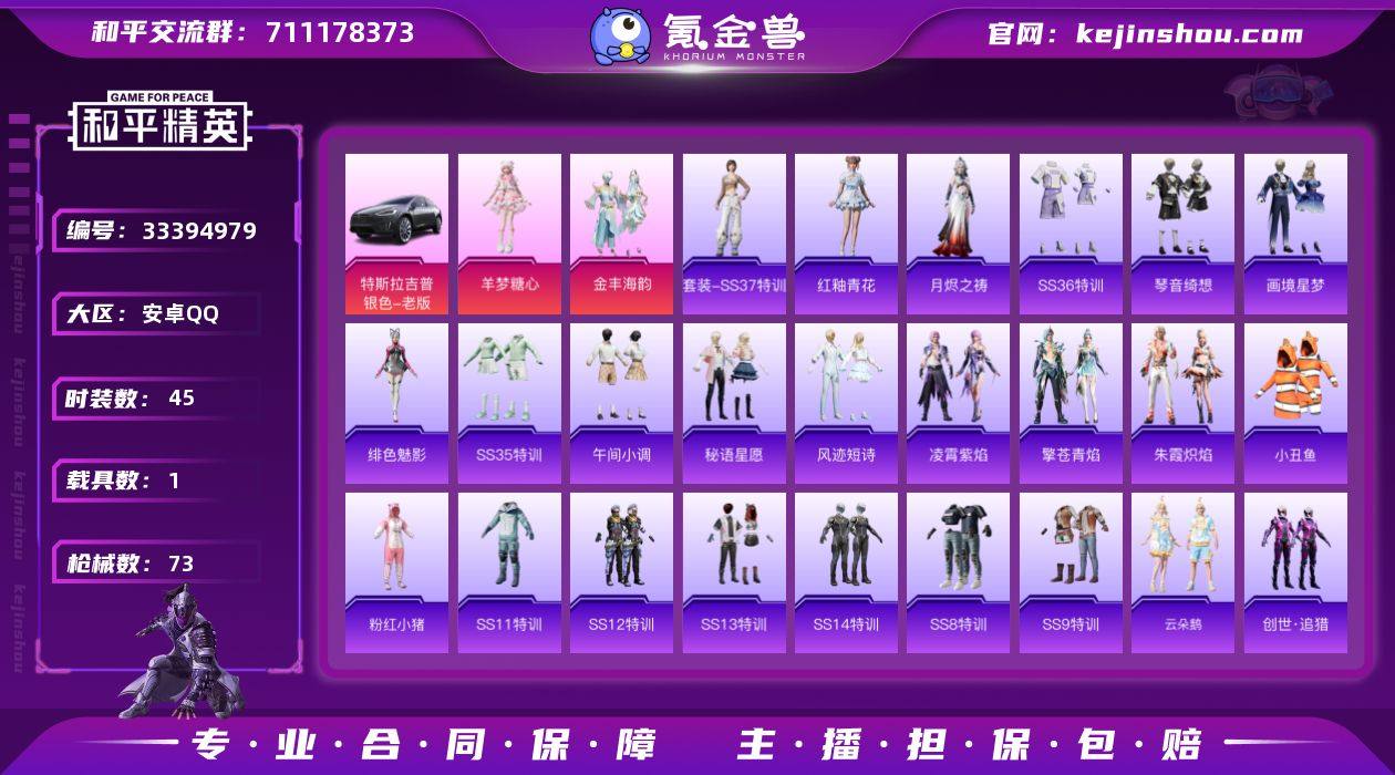 2粉装6特效枪1载具 小丑鱼 羊梦糖心 满级妹控 特斯拉
