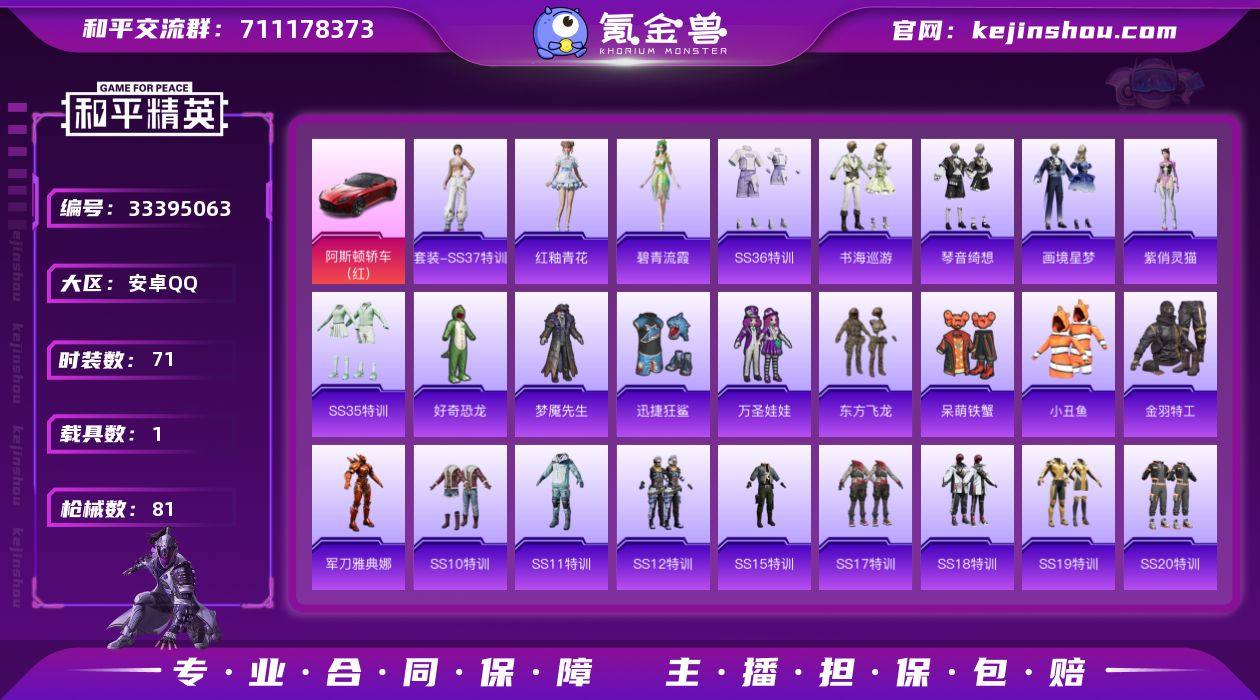 5w8热力值精品小号 3满级特效枪1载具 金羽特工 老六服 小丑鱼 东方飞龙 满级妹控 红马丁
