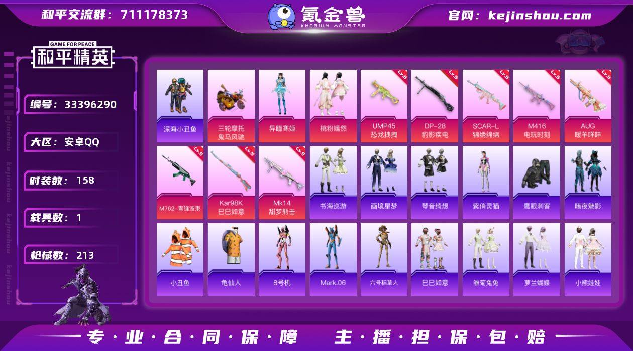【LHPX2260】粉装2/粉枪10/载具1/珍稀飞行器130245/套装158/枪皮213/热力值63157/历史最高段位:王牌印记14次/Lv:65/五级SCAR-L-锦绣绵绵/五级M416-电玩时刻/五级AUG-暖羊咩咩/五级M762-青锋波束/六级UMP45-恐龙拽拽/二级UMP45-萌骑冒险/五级Kar98K-巳巳如意/五级MK14-甜梦熊击/五级Mk14-福马献瑞/五级DP-28-豹影疾电/深海小丑鱼/小丑鱼/龟仙人/8号机/Mark.06/六号稻草人/桃粉嫣然/异瞳寒姬/鬼马风驰/SCAR-L-锦绣绵绵/M416电玩时刻/AUG-暖羊咩咩/M762-青锋波束/UMP45恐龙拽拽/UMP45-萌骑冒险/Kar98K-巳巳如意/MK14-甜梦熊击/Mk14-福马献瑞/DP-28-豹影疾电/炫彩糖果飞行器/幻影战神降落伞/星之彼岸降落伞/环太平洋降落伞/飒粉甜心降落伞/闲梦青缨降落伞/夜幕颂歌降落伞/辉耀战甲降落伞/精灵梦叶罗丽降落伞/初号机 觉醒Ver.降落伞/未来领航者降落伞/月影灵韵降落伞/桃粉嫣然降落伞/幻彩电音降落伞/异瞳寒姬降落伞/炫彩糖果降落伞/罪夜之冕降落伞/鸢尾珑雾降落伞/巳巳如意/套装-雪国风尚/炫彩糖果/角色-奈斯/套装-马上有钱/套装-迅捷龙虾/雏菊兔兔/萝兰蝴蝶/小熊娃娃/多纳泰罗/火种守卫者/糖糖葫芦/青团波波/临安公主/燕燕于飞/鱼渊荷华/白辉玉蕊/紫幽梦/蓝冰羽/星影赞美诗/星渊小...