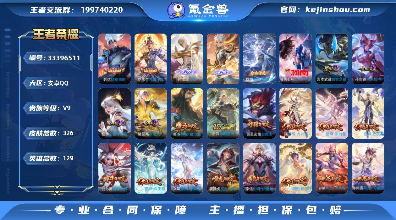 "差2240块v10!韩信典藏!花木兰典藏!猴子无双!曜无双!嫦娥珍品!鲁班珍品!马年关羽!白虎志!满蛇年!财神纳福天幕!【精品v9 特价出售 永久包赔】js1725-安卓Q-V9-尊贵铂金II段位-129英雄-326皮肤-2典藏皮肤-2无双-2珍品传说-44传说-126限定-4星元岁雨灵司 幽冥之眼 未来机甲 金色仲夏夜-2天幕-104史诗 【英雄全皮·2】:敖隐全皮,赵怀真全皮 【荣耀典藏·2】:花木兰九霄神辉,韩信弑枪猎影 【无双皮肤·2】:孙悟空无相,曜器灵螭龙剑 【珍品传说·2】:嫦娥器灵落星盏,鲁班七号江户川柯南 【传说皮肤·44】:关羽神骥镇沧海,后羿神树通天,司空震愿照山河定,女娲愿照千秋盛,妲己愿照众生和,澜愿照九州拓,蔡文姬愿照福禄聚,虞姬愿照岁时盈,云缨幻光神枪,嬴政玄雷天君,桑启鸣野蒿,吕布曦玄引,孙尚香乘龙问璇玑,孙策乘龙淬吴钩,赵云乘龙铭钟鼎,露娜霜月吟,吕布遇见神鼓,夏洛特浮生妄,项羽无限倾心,孙悟空齐天大圣,李信山海炽霜斩,李白诗剑行,百里守约碎云,橘右京枫霜尽,马超无双飞将,裴擒虎寅虎赤拳,孙尚香异界灵契,赵云淬星耀世,周瑜音你心动,公孙离祈雪灵祝,诸葛亮时雨天司,镜炽阳神光,虞姬启明星使,曜云鹰飞将,李信一念神魔,貂...