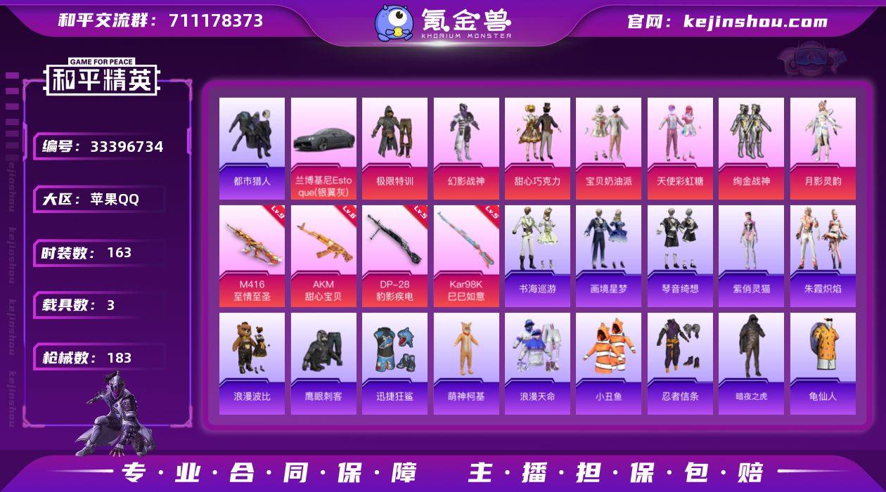 【LHPX2026】粉装9/粉枪8/载具3/珍稀飞行器130181,123358/套装163/枪皮183/热力值66972/历史最高段位:王牌印记12次/Lv:61/六级AKM-甜心宝贝/九级M416-至情至圣/五级ACE32-萌骑漫游/四级Vector-月中灵/三级AKS-74U-森灵之息/五级Kar98K-巳巳如意/一级Mk14-福马献瑞/五级DP-28-豹影疾电/浪漫天命/都市猎人/小丑鱼/忍者信条/暗夜之虎/龟仙人/浪漫波比/极限特训/幻影战神/甜心巧克力/宝贝奶油派/天使彩虹糖/绚金战神/月影灵韵/角色-镜中幻/角色-月中灵/法拉利LaFerrari(赛车红)/兰博基尼Estoque(银翼灰)/空客H135-蔚蓝之翼/AKM甜心宝贝/M416至情至圣/ACE32-萌骑漫游/Vector-月中灵/AKS-74U-森灵之息/Kar98K-巳巳如意/Mk14-福马献瑞/DP-28-豹影疾电/香车宝马飞行器/极意拳锋飞行器/极限特训降落伞/幻影战神降落伞/甜心宝贝降落伞/飒粉甜心降落伞/黄族统领降落伞/莲影清波降落伞/圣堂之誓降落伞/忍者神龟降落伞/临安公主降落伞/幻彩电音降落伞/套装-雪国风尚/套装-马上来财/燕燕于飞/鱼渊荷华/海琴烟/蜜露汐语/朱霞炽焰/紫俏灵猫/书海巡游/画境星梦/琴音绮想/套装-雨过天青/套装-红釉青花/角色-曹焱兵/角色-枫露凝珀/AKM-彩虹符号/AKM-影袭/AKM-环太平洋/AKM-缤纷海域/AKM-萌趣颜...